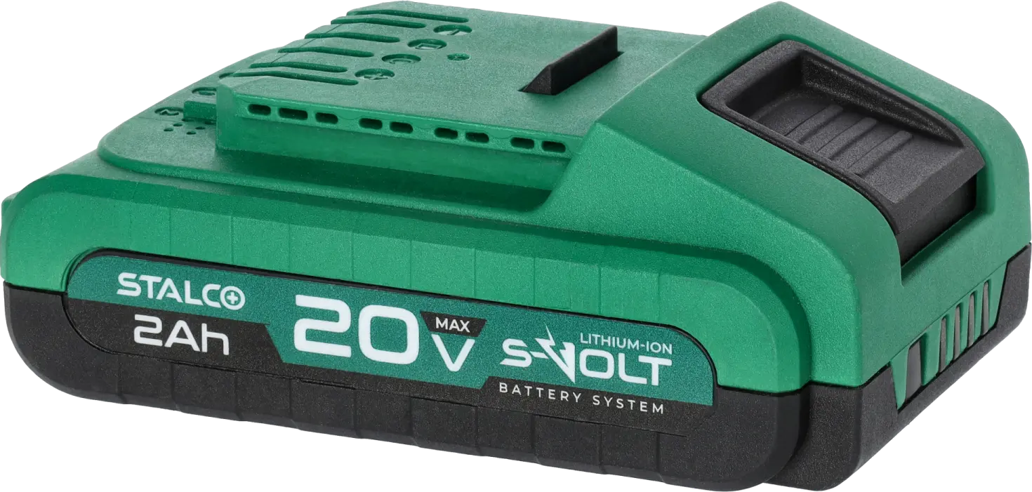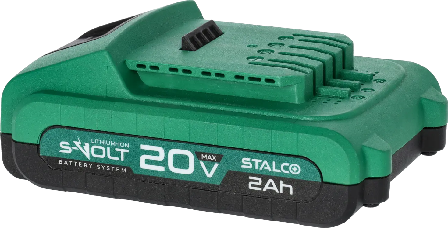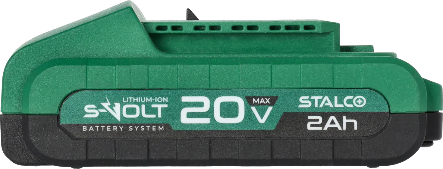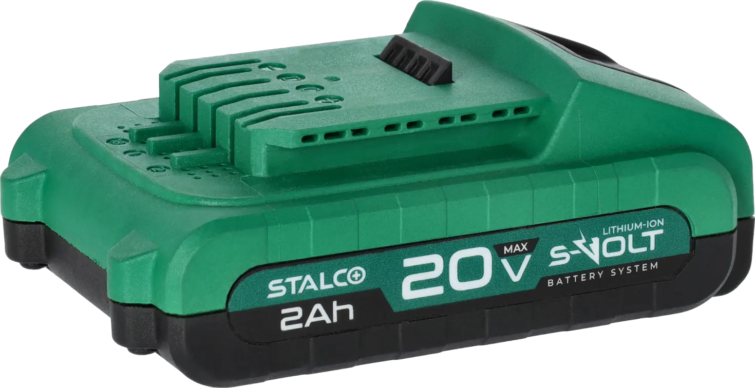 The integrated battery management system continuously monitors the technical condition of the cells, optimizes energy distribution, and improves the overall performance of the power tool. The lithium-ion 20V STALCO battery with a capacity of 2 Ah provides a stable energy supply for extended periods of use.