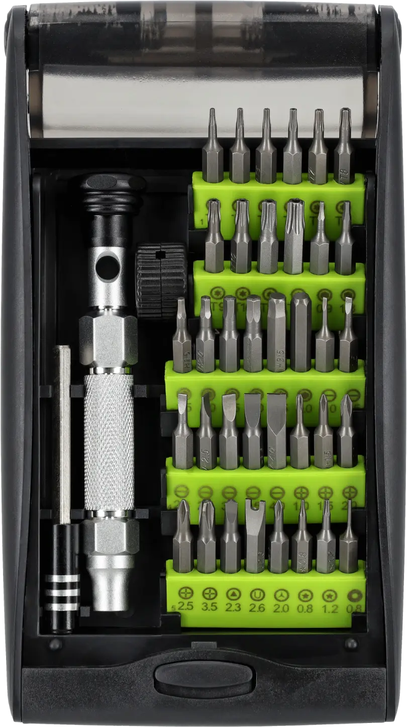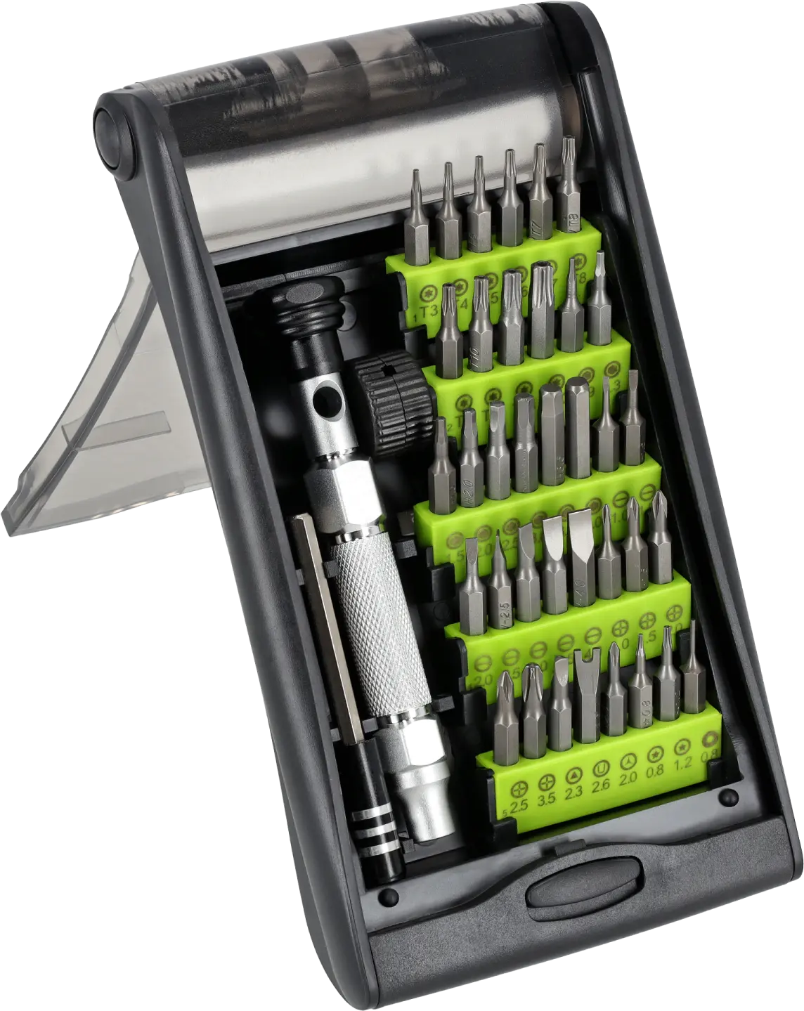 38-piece precision bit set (5904012190801)DescriptionReviews (0) € 15,20 (Incl. 21%) € 12,56 (Excl. 21%)Add to cartBuy Now