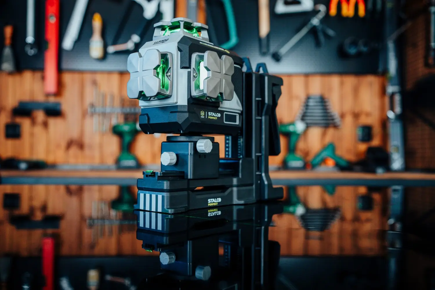 The Stalco Perfect LLP3DG 3D laser is an advanced model with a green laser beam that combines a robust construction with modern features and maximum precision. Thanks to the use of materials such as composite, aluminium, and TPR plastic, the laser offers exceptional durability and resistance to harsh working conditions.