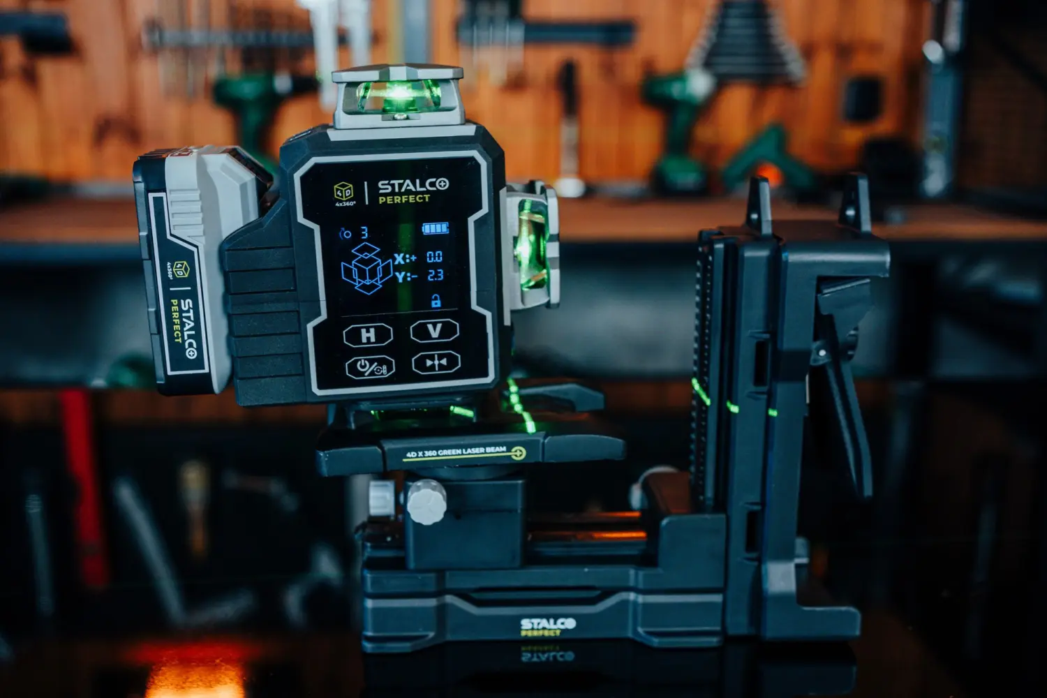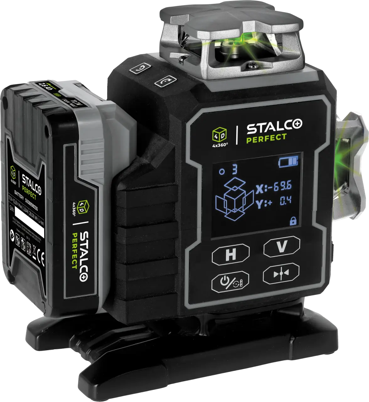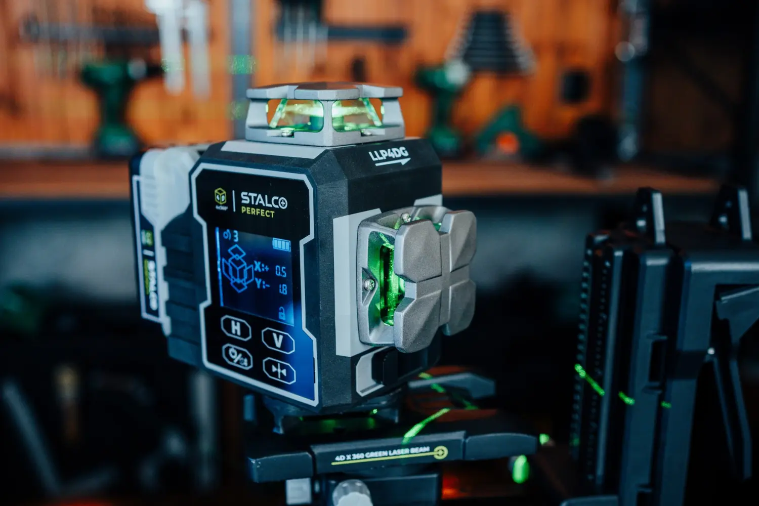 The Stalco Perfect LLP4DG 4D Laser is the most advanced model in the Stalco range, designed for professionals who demand maximum precision and functionality. Equipped with a green laser beam and 16 laser lines, it provides full control through a large display and innovative control features. The LLP4DG has a motorized laser base, allowing precise adjustment of the laser position via buttons on the device, remote control, or mobile app.