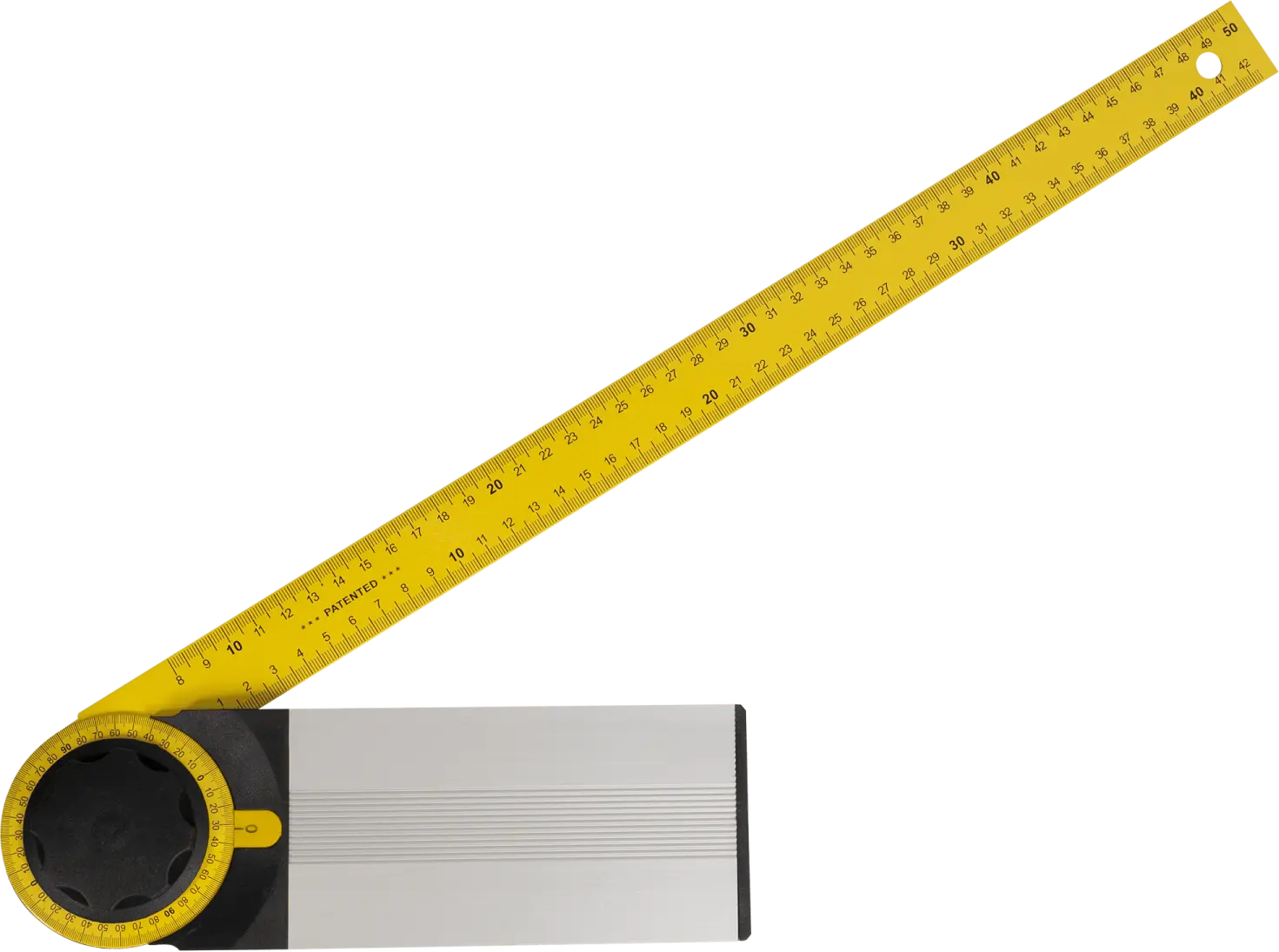 An adjustable protractor is one of the tools you should have in your workshop. It's a handheld measuring tool used to measure the angle of inclination of surfaces. You can use it to assess an angle or set a selected angle and use the system for marking and plotting. You'll use a plastic knob for this purpose. The adjustable protractor has clear scales on the edges of the blade, indicating degrees of inclination and length. The durable handle design protects the tool from damage and resulting measurement inaccuracies.