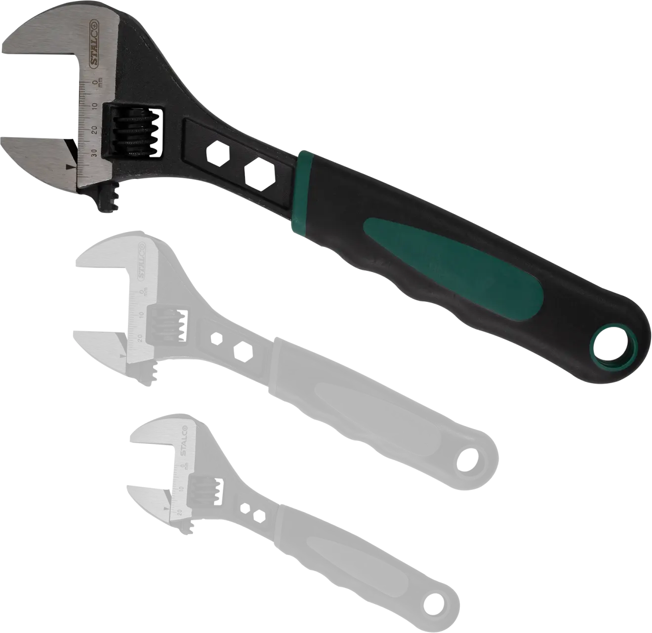 An adjustable wrench is often needed for manual work. This tool is used for loosening screws, nuts, and other threaded connections. It also works well for accessories with worn or worn edges. This is possible thanks to the adjustable jaw spacing. You can adjust the jaws to your desired size or create custom ones. The STALCO adjustable wrench is made of chrome-vanadium steel. This material provides resistance to mechanical damage, abrasion, corrosion, and other harmful factors. The ergonomic bi-material handle allows for comfortable, fatigue-free operation. It also prevents the wrench from slipping out of wet hands or gloves. STALCO offers adjustable wrenches in four variants. They vary in shank length from 150 to 300 millimeters and jaw width.