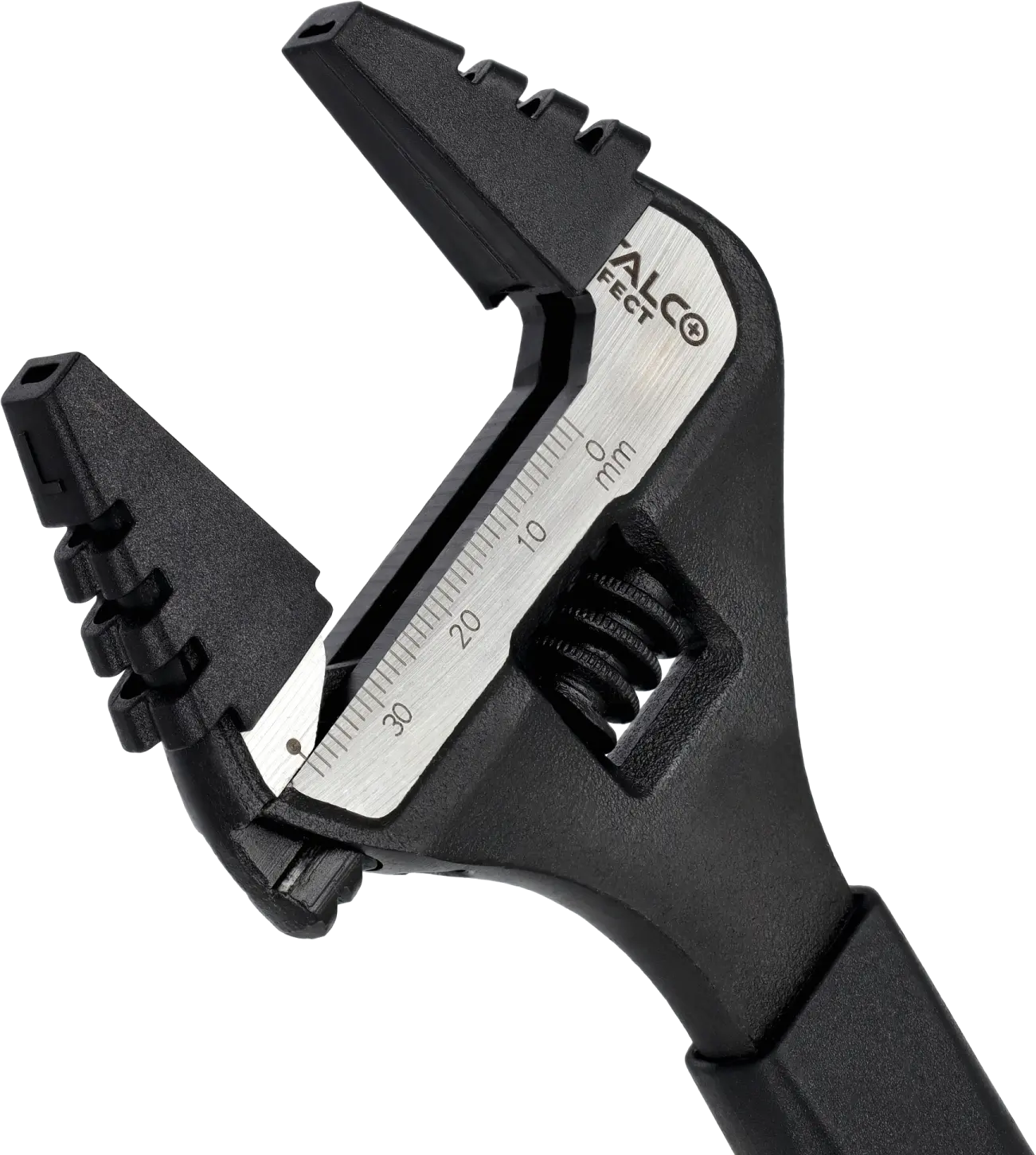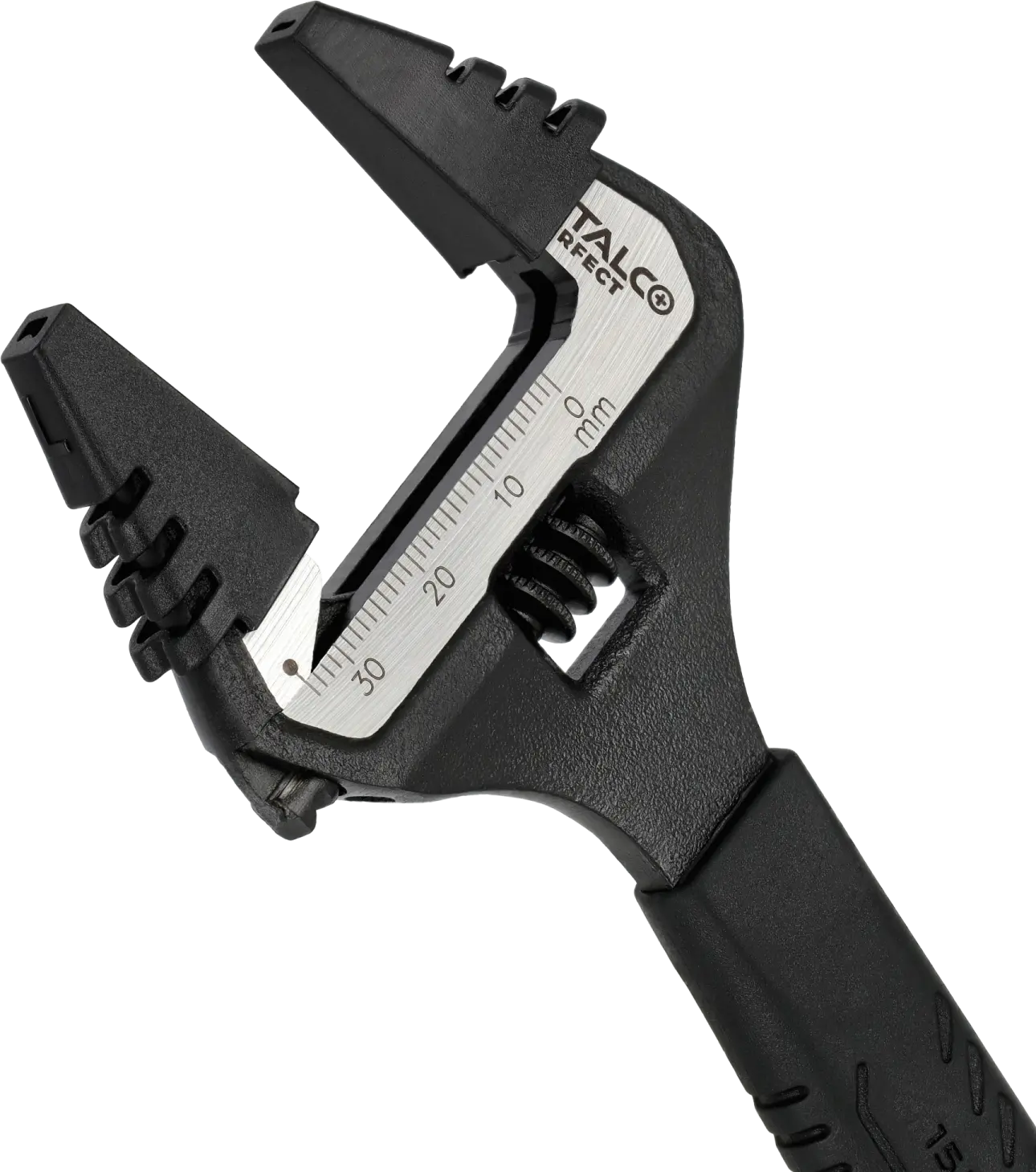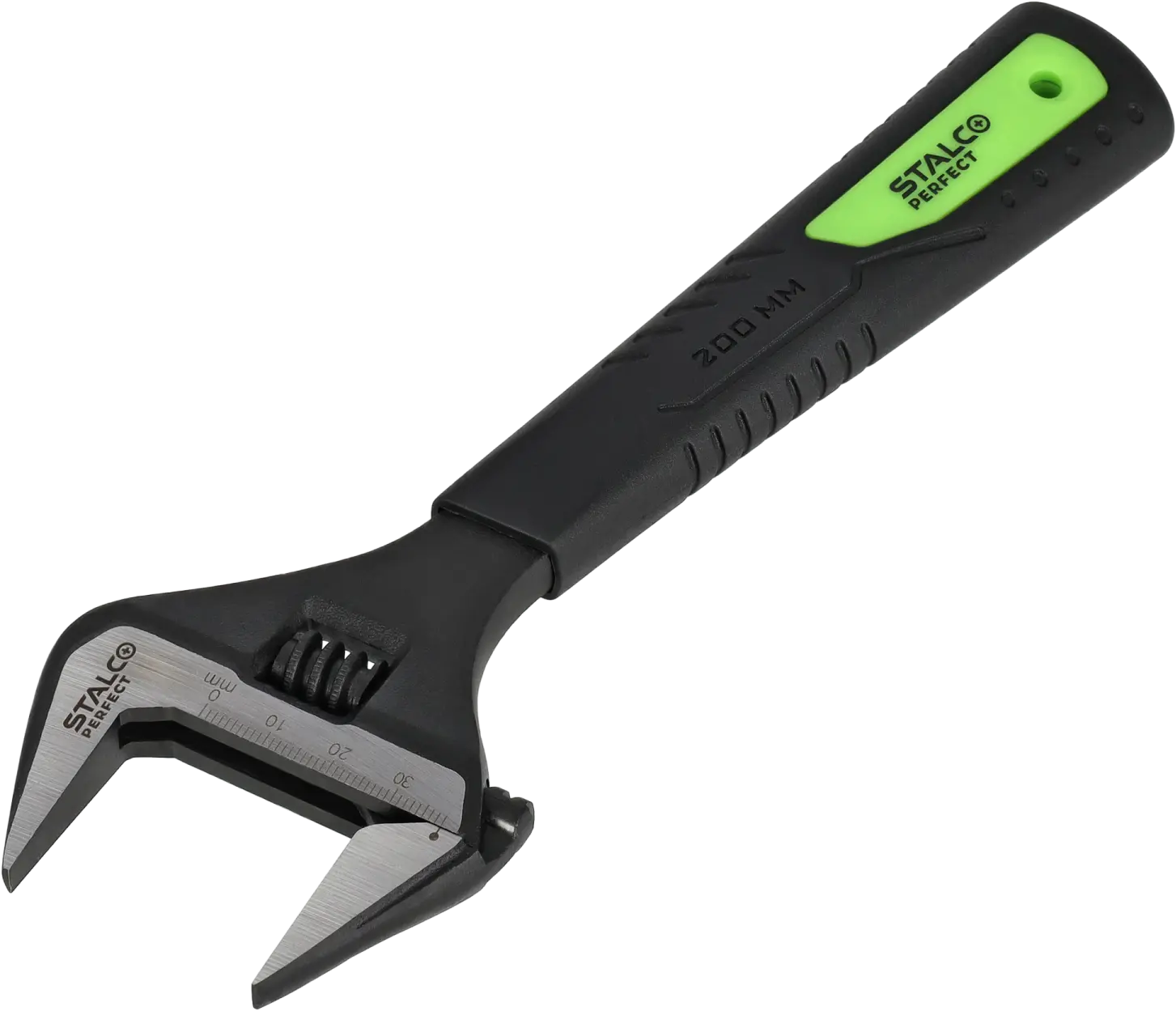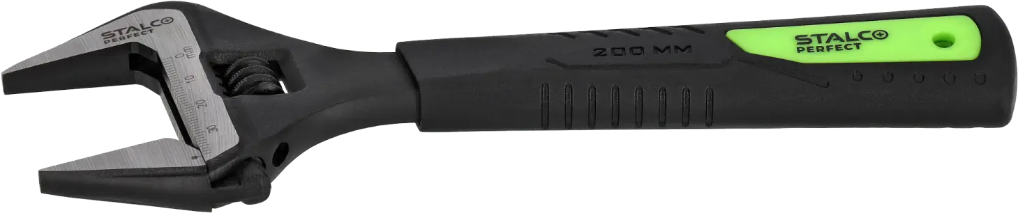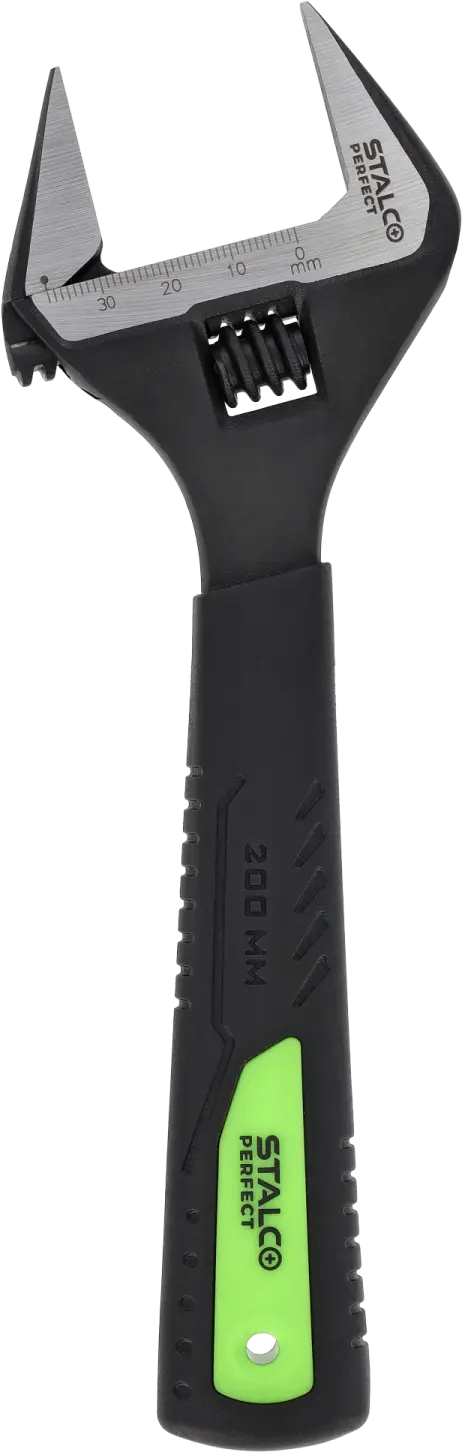 An adjustable wrench is a highly functional hand tool. It is useful for construction, mechanical, and installation work. It can be used on various types of threaded connections. A distinctive feature is the ability to change the jaw spacing. This allows the tool to be adapted to different nut sizes and also facilitates work on components with worn edges. The 150 mm adjustable wrench from the STALCO PERFECT line is equipped with a worm mechanism for adjusting the spacing. A clear vernier scale allows for quick assessment of the spacing. The ergonomic, plastic-coated handle allows for a secure grip. The entire tool is durable and resistant to harmful external factors. STALCO offers three different variants of this type of adjustable wrench. The products differ in the jaw spacing range and handle length.