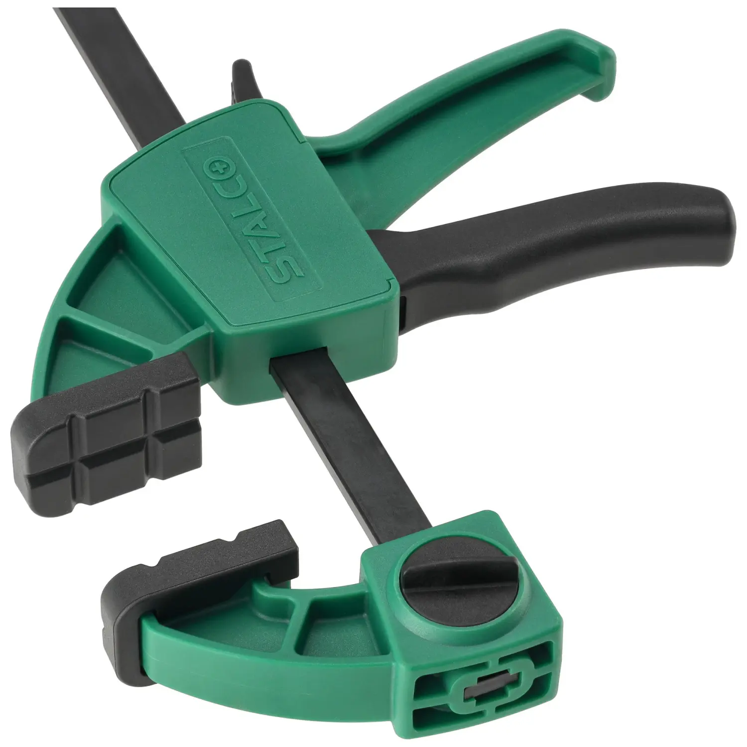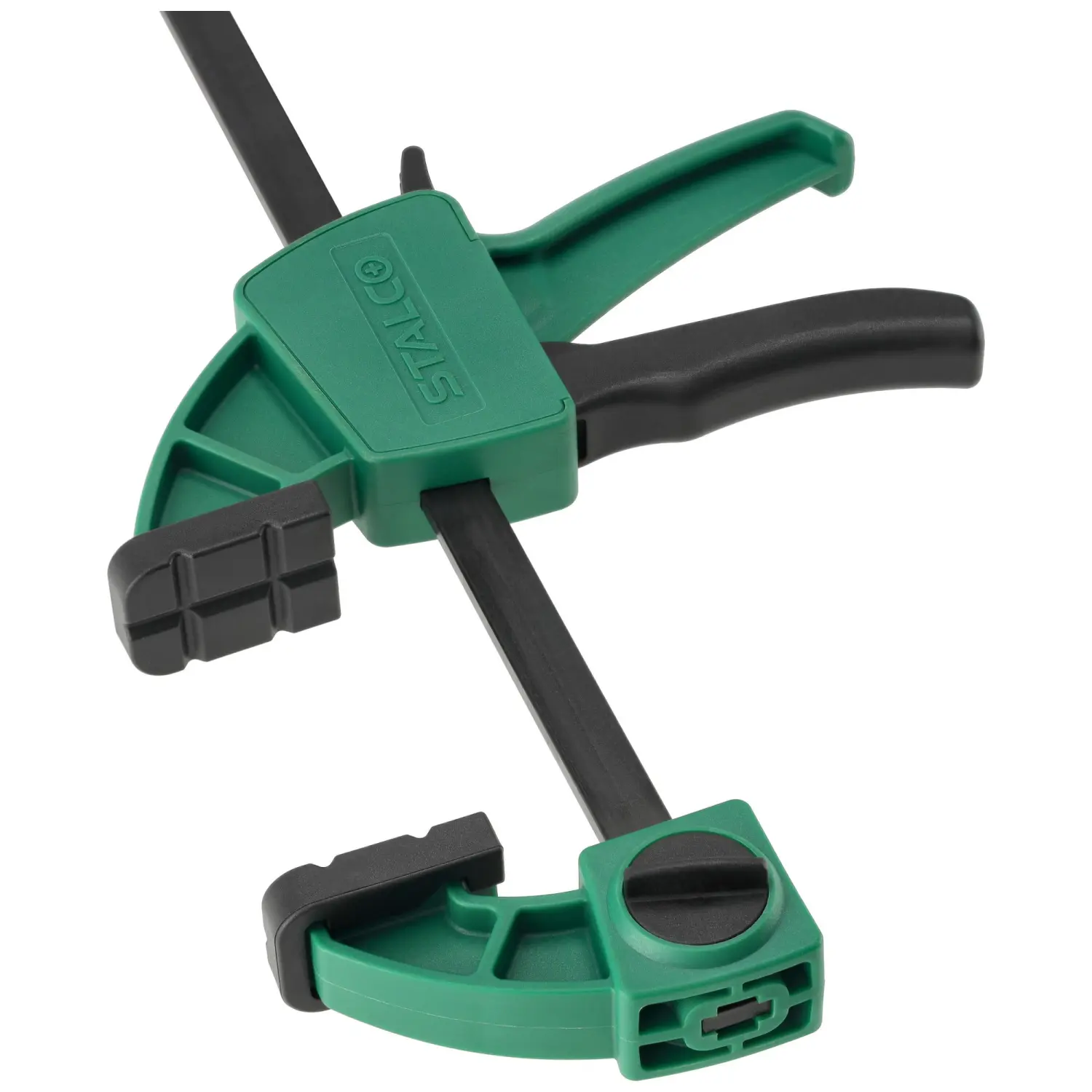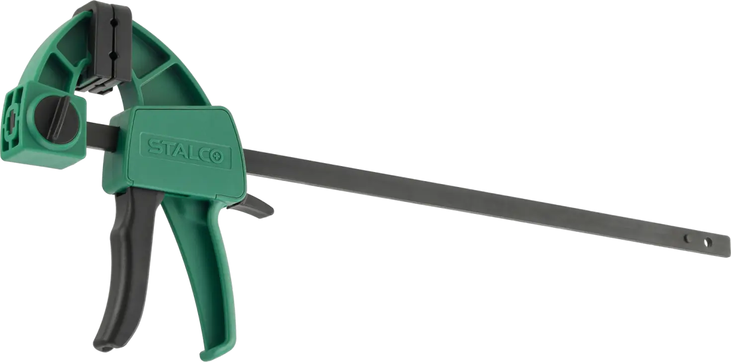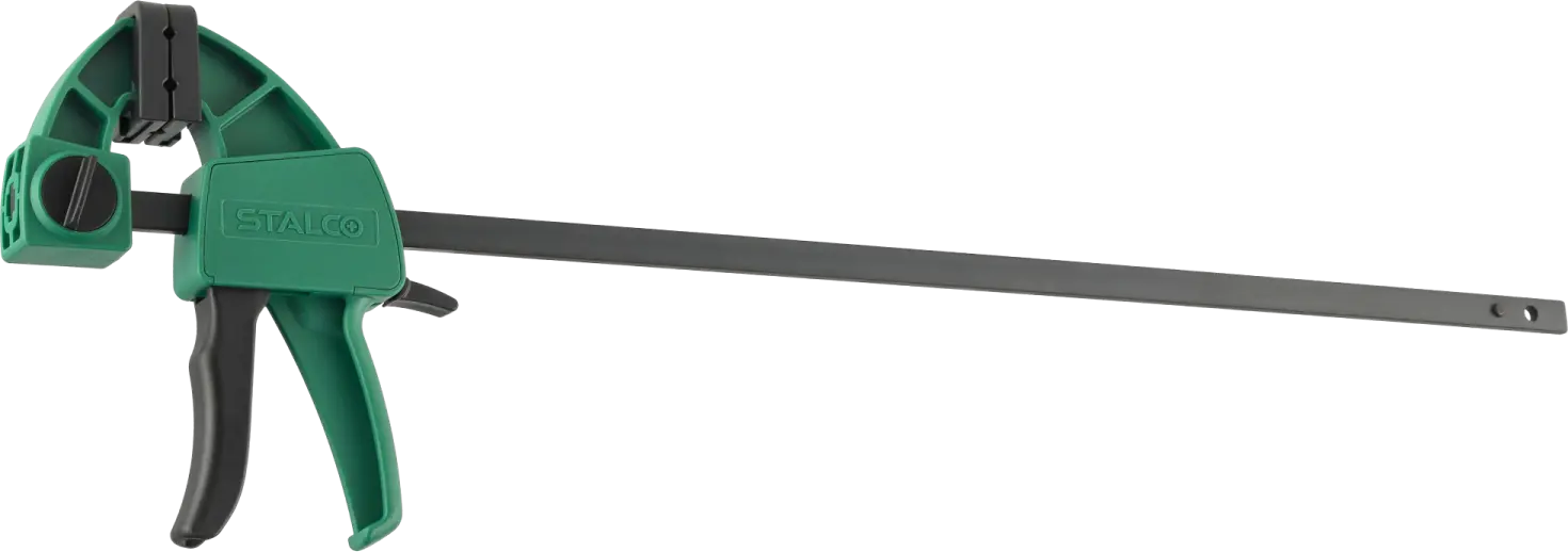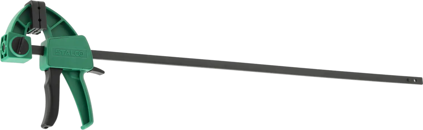 STALCO 60x150mm automatic clamp, designed for one-handed use, the clamp works for compression, and after reversing the upper jaw, also for spreading, clamp with reinforced construction, clamping force: 60kg, intended for carpentry work.