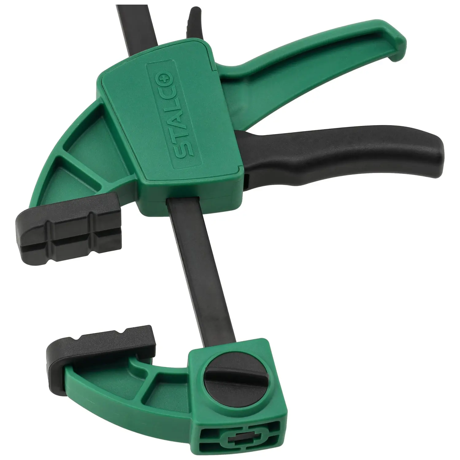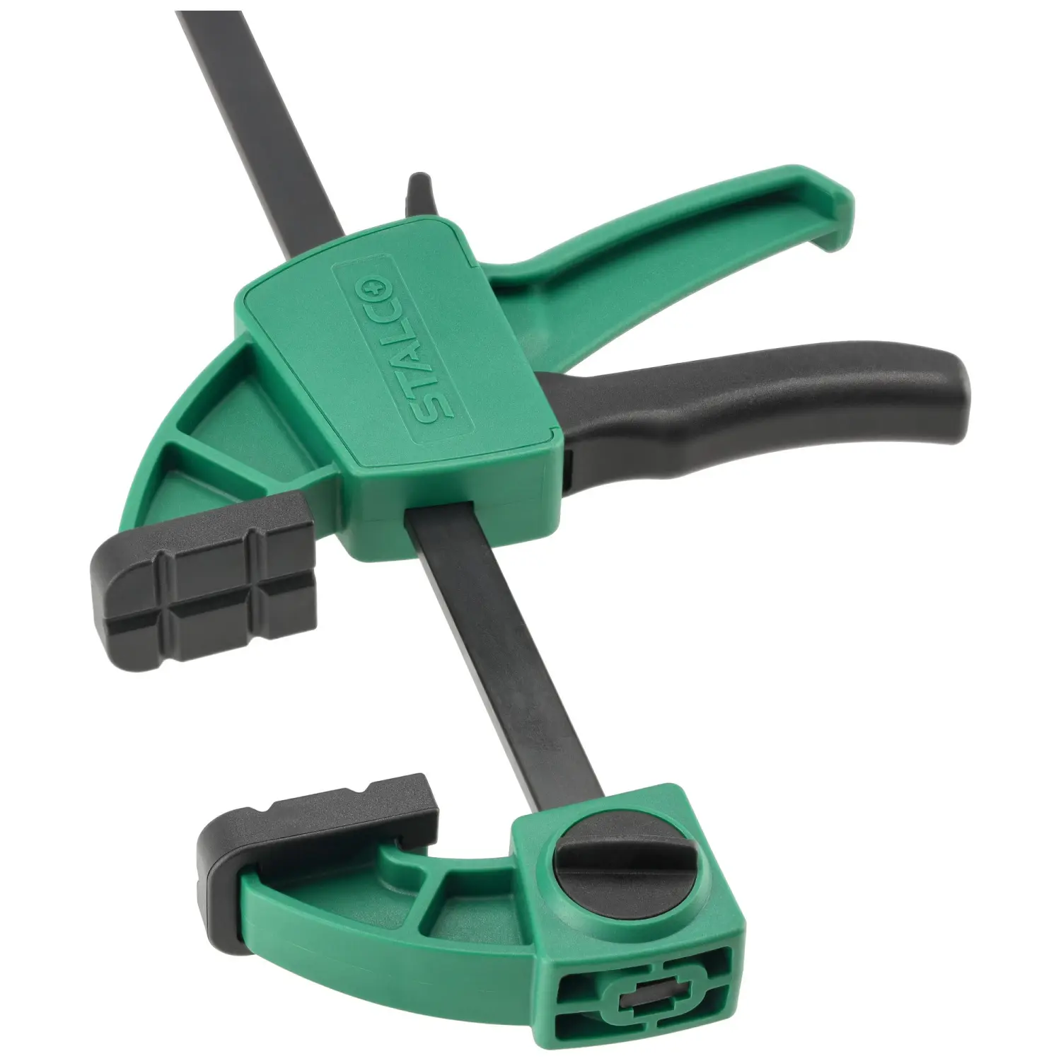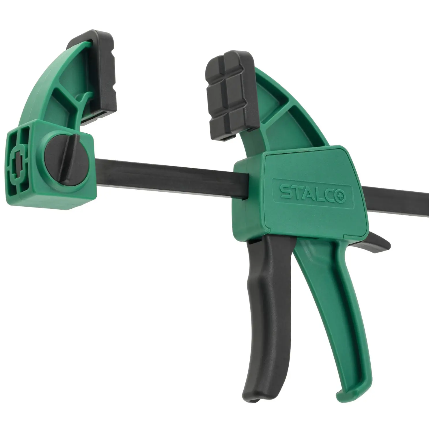STALCO 60x150mm automatic clamp, designed for one-handed use, the clamp works for compression, and after reversing the upper jaw, also for spreading, clamp with reinforced construction, clamping force: 60kg, intended for carpentry work.