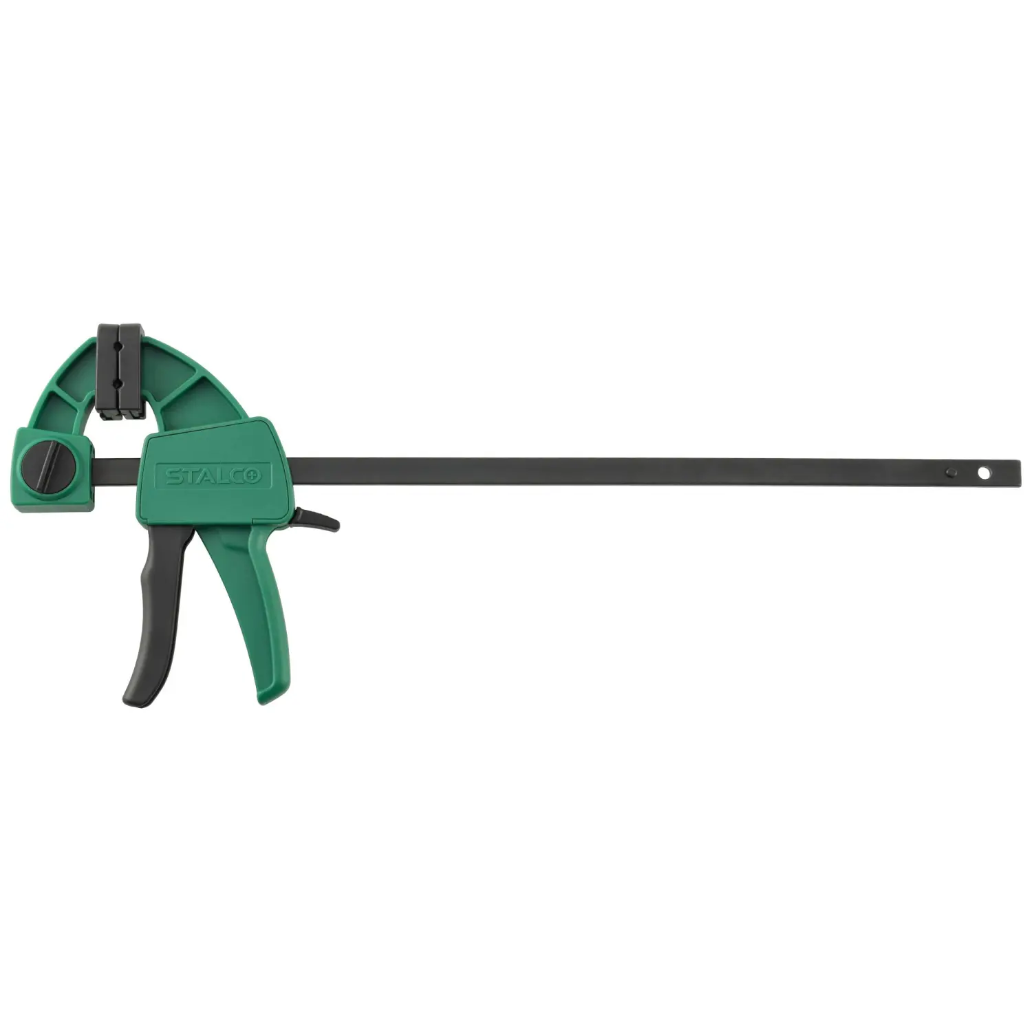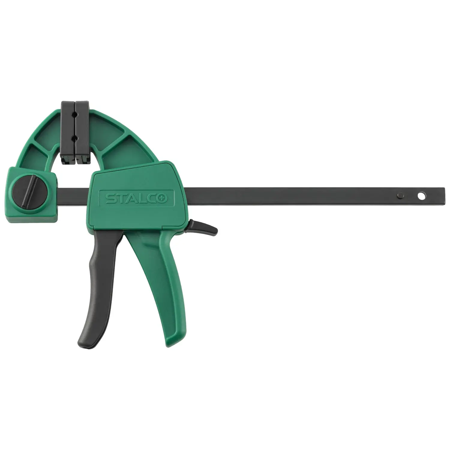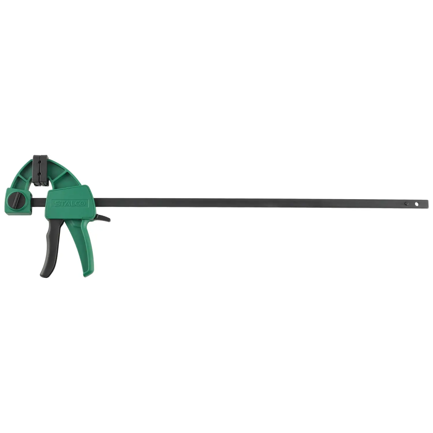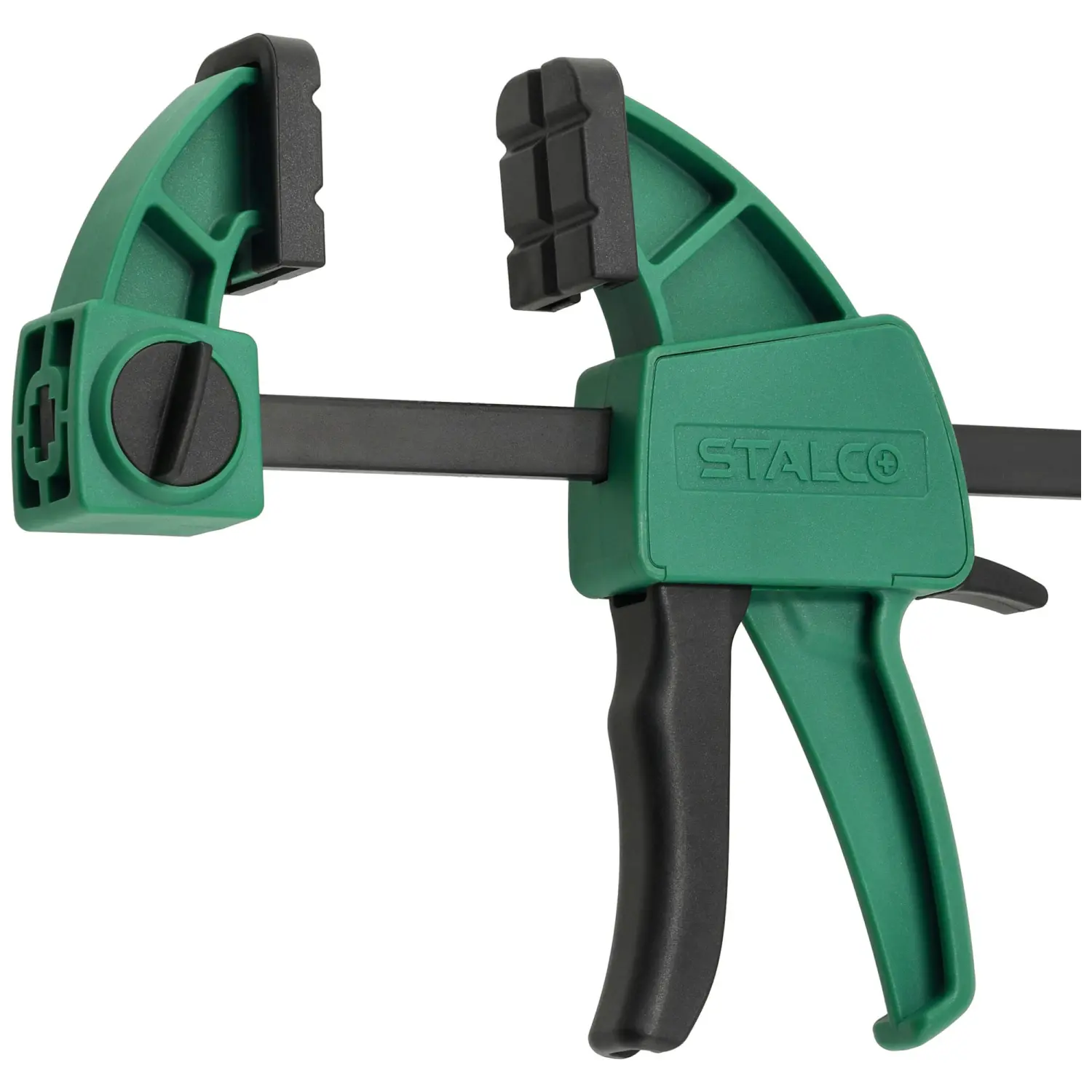 STALCO 60x150mm automatic clamp, designed for one-handed use, the clamp works for compression, and after reversing the upper jaw, also for spreading, clamp with reinforced construction, clamping force: 60kg, intended for carpentry work.