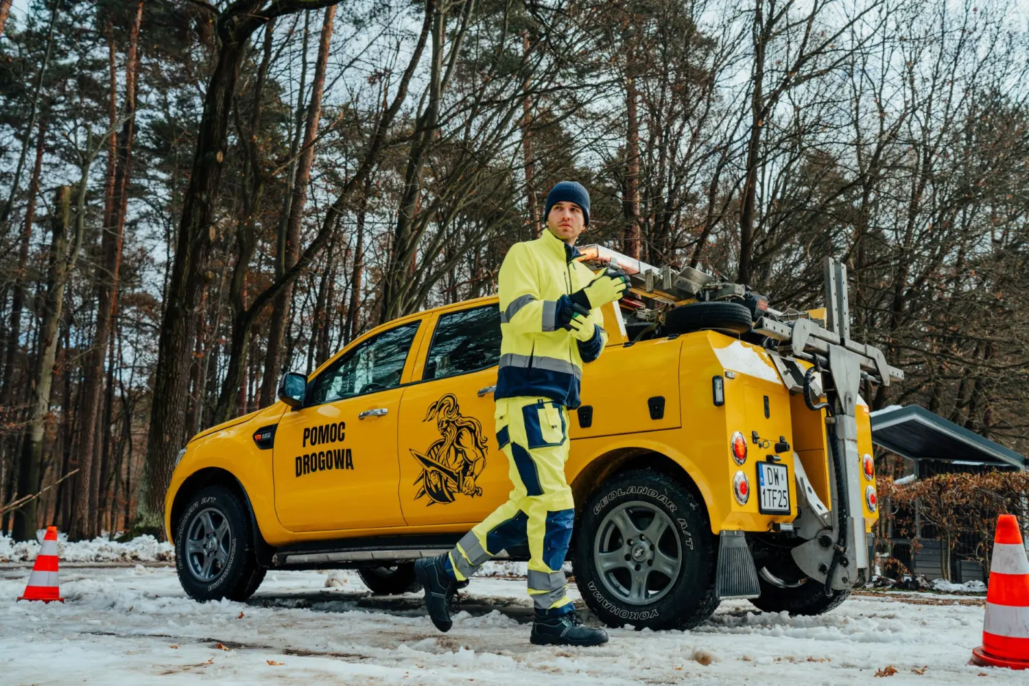 The fleece is available in two color variants dominated by neon yellow or neon orange, combined with contrasting dark navy inserts. These reinforcements protect high-wear areas and increase durability. A system of 50 mm reflective tapes significantly improves user visibility in poor lighting conditions.