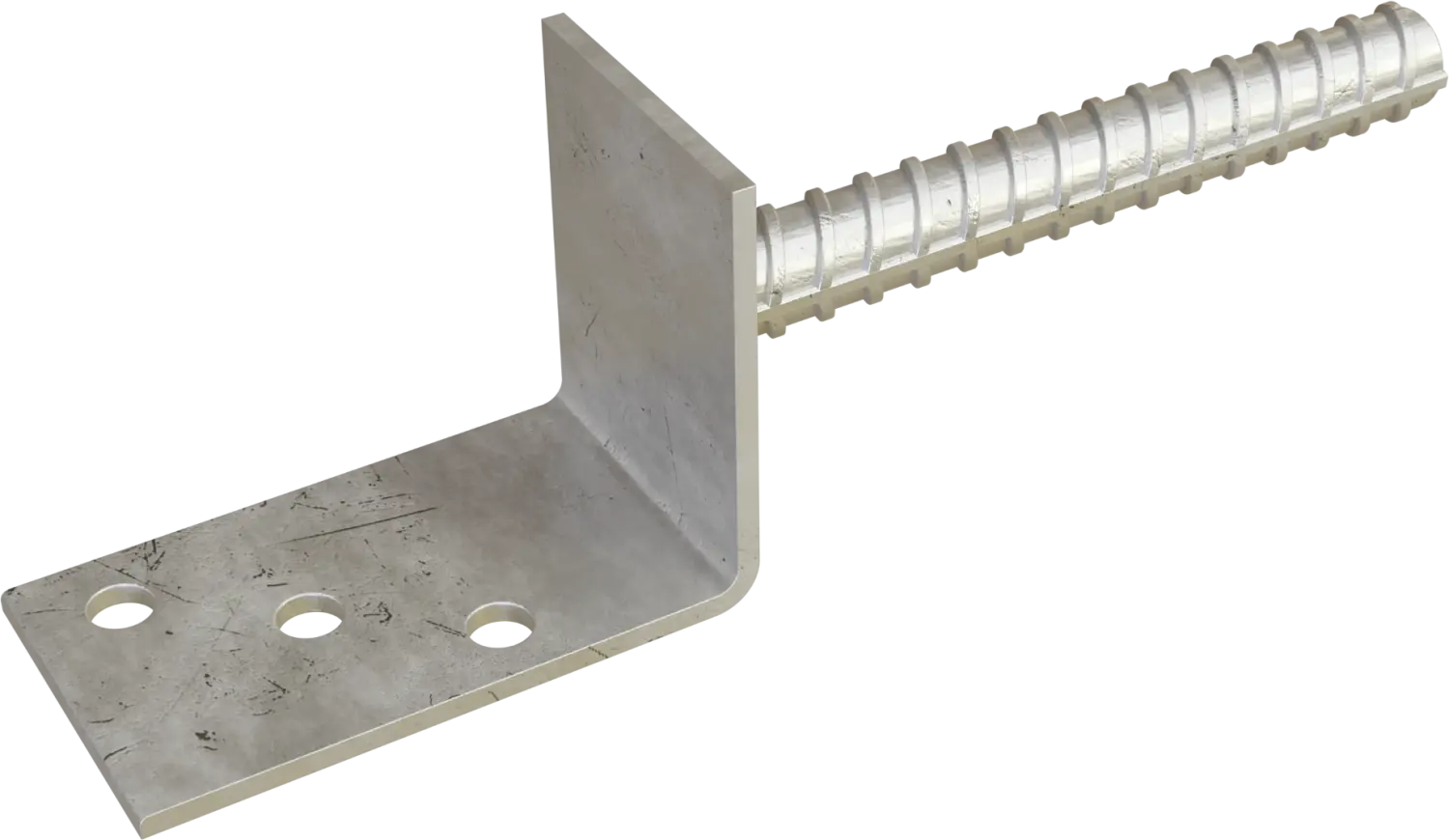 It consists of a U-shaped bracket welded to a ribbed rod that is embedded in concrete.