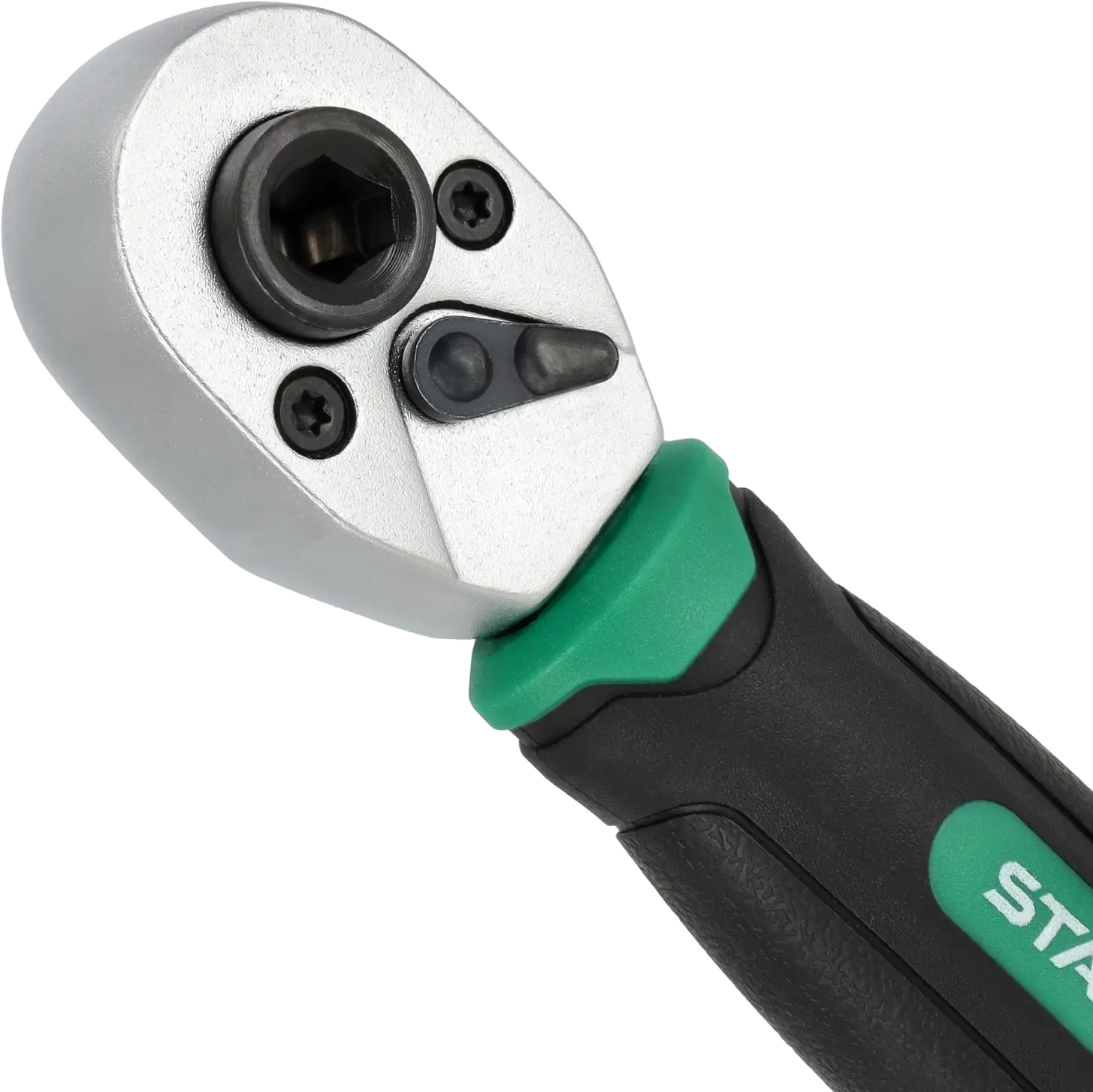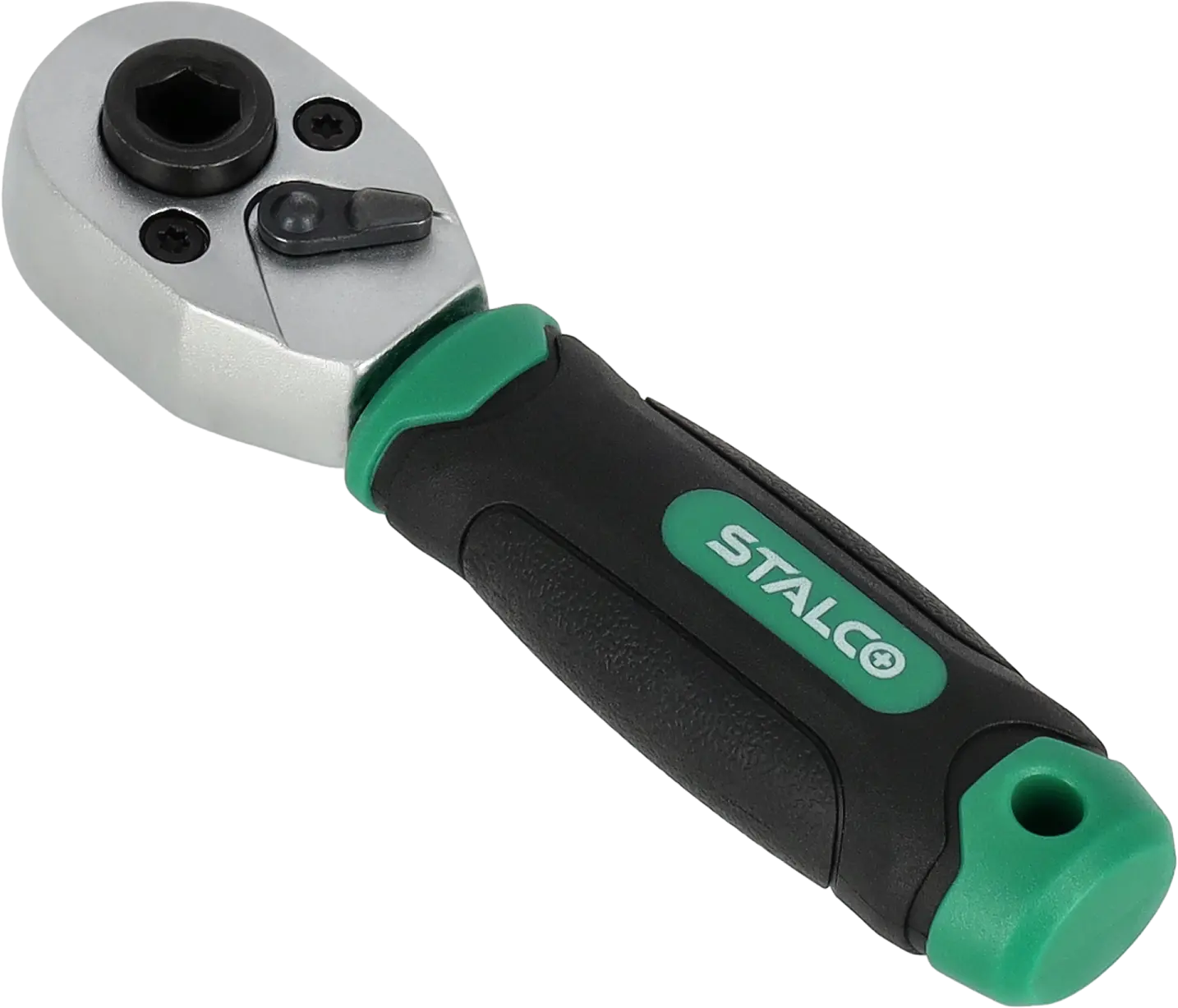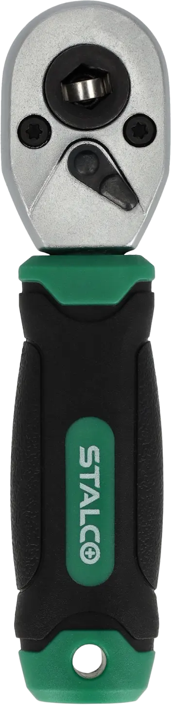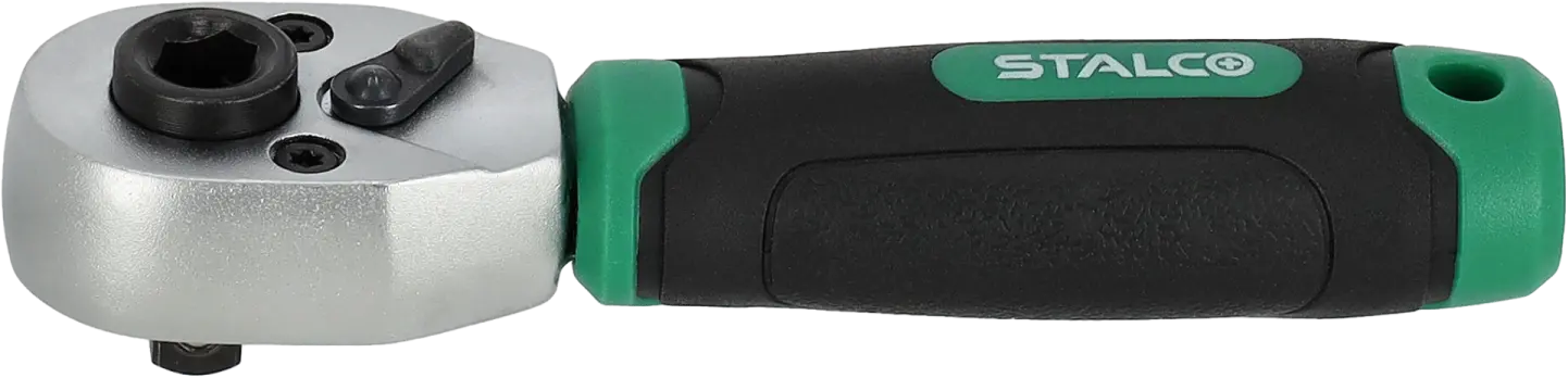 The STALCO bit and socket ratchet is a functional handheld workshop tool. It's useful for tightening and loosening most fasteners, such as screws and bolts. Its compact size and smallest quarter-inch socket shank allow for the smallest of sockets. The ratchet mechanism boasts 72 teeth. These features make the STALCO bit and socket ratchet ideal for even the most precise tasks. The tool is made of chrome vanadium steel, and the ergonomic plastic handle makes the ratchet durable and ideal for use in workshops, construction sites, and industrial applications. Its compact size also makes it easy to store.