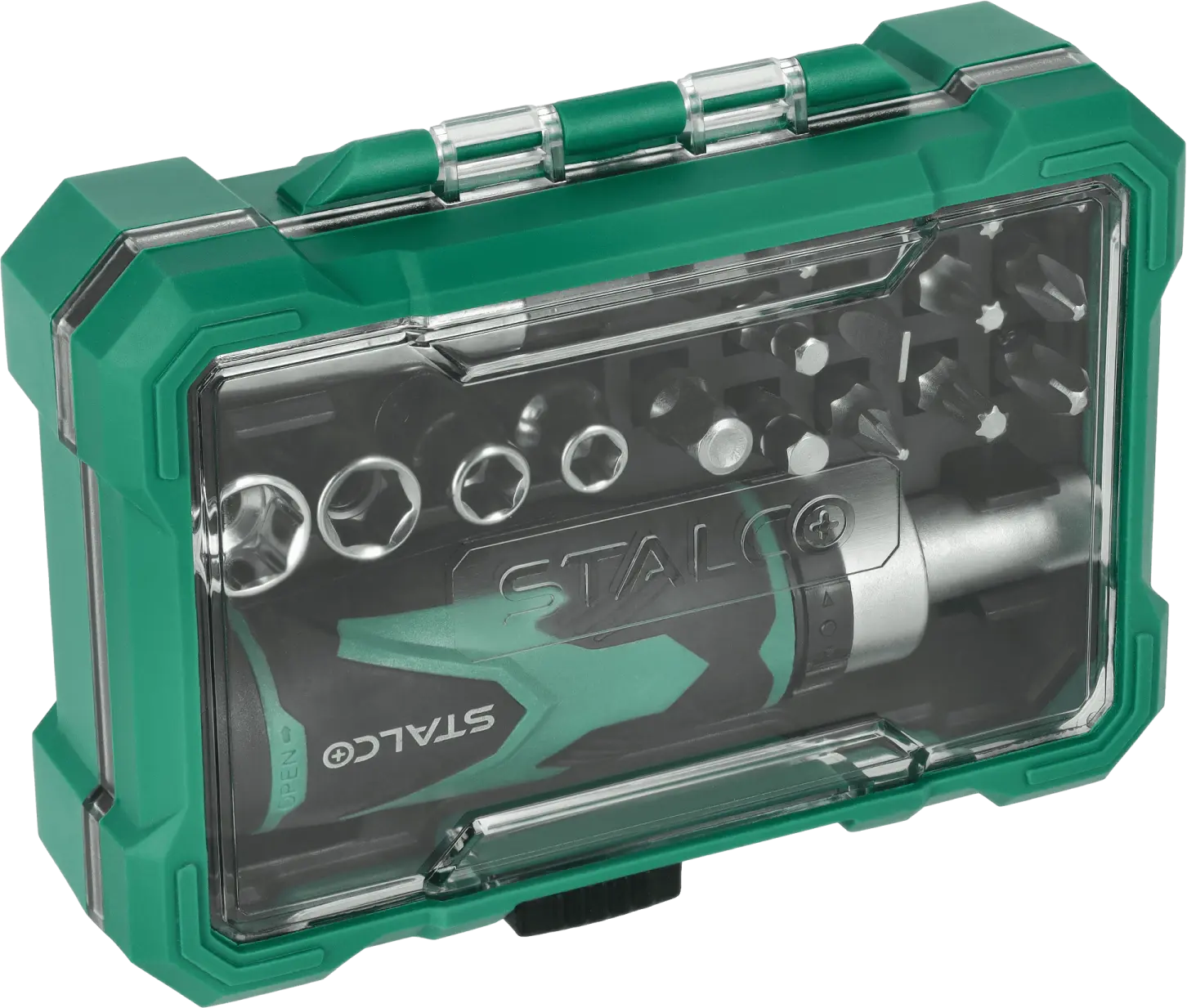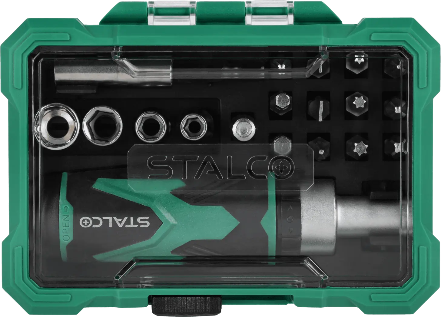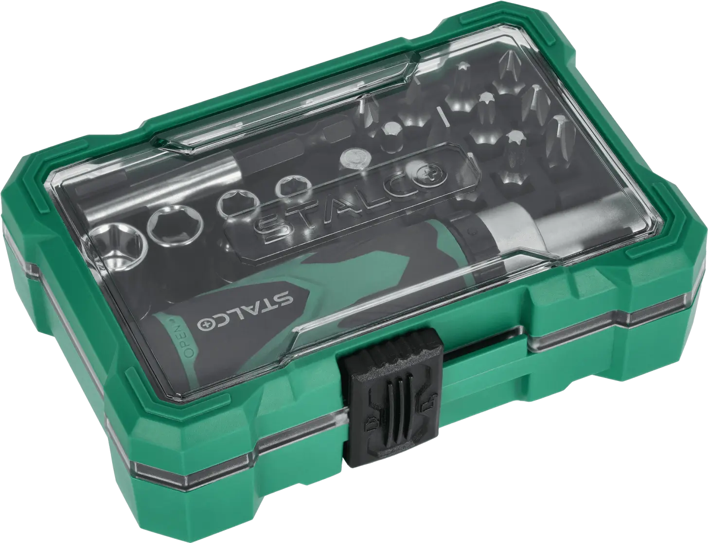 This functional set of 1/4-inch bits, sockets, and accessories will come in handy for many assembly tasks. It includes a set of sockets in various sizes that fit a quarter-inch tool shank. A ratcheting handwheel is used to operate the sockets. The set also includes accessories that make assembly easier. The STALCO set of bits, sockets, and accessories can be used for DIY, construction, and mechanical repairs. It is ideal for work in the workshop and on the construction site. The set is made of S2 steel, providing high resistance to mechanical damage and abrasion, ensuring the accessories will last for a long time. All components are housed in a plastic case that protects them from loss. The packaging also facilitates transport and use of the tools outside the workshop.