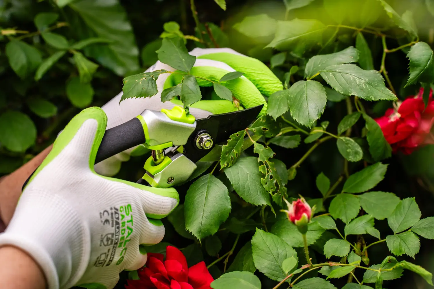 Pruners, shears, and saws are used for maintenance pruning and care of plants.