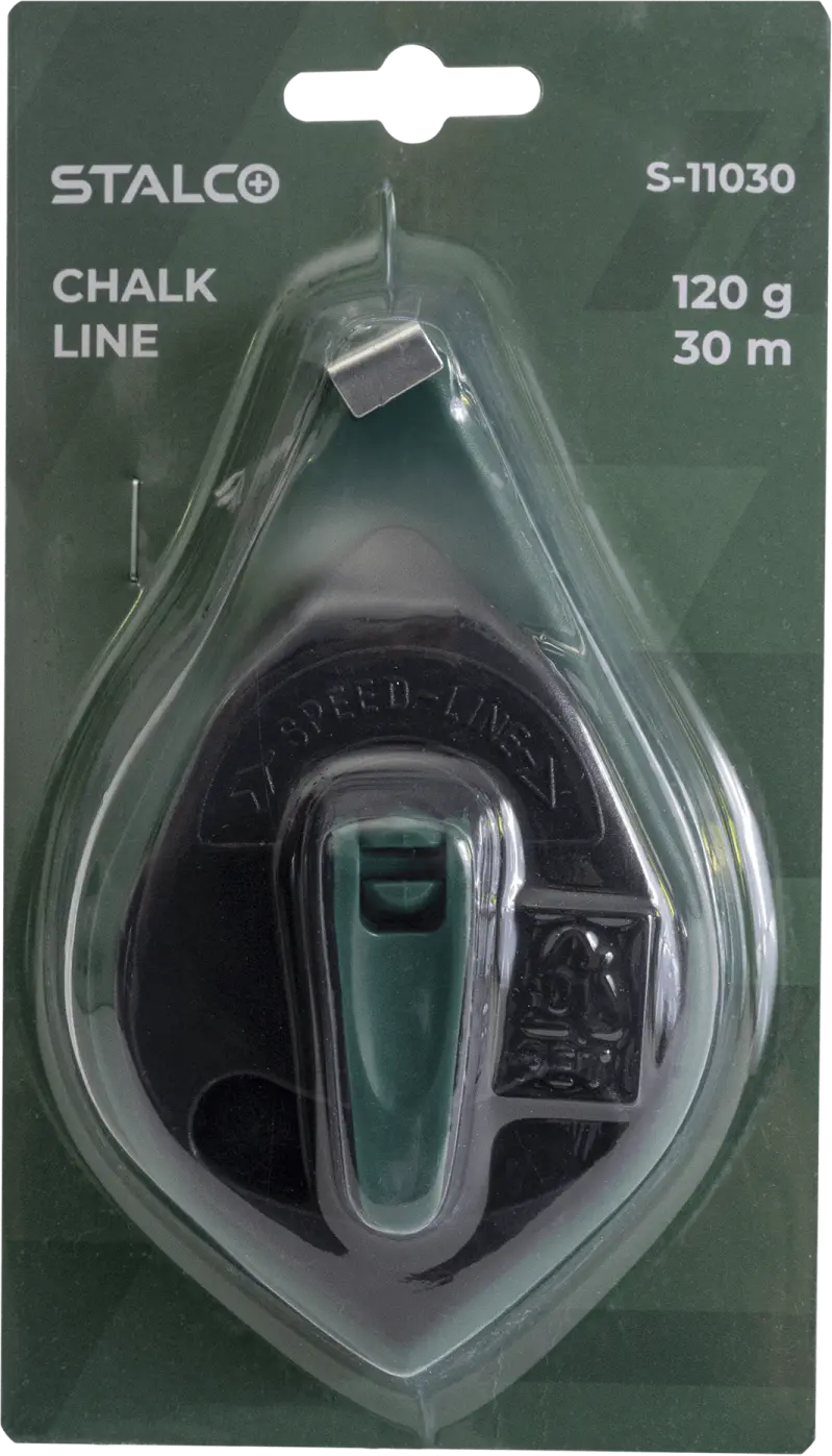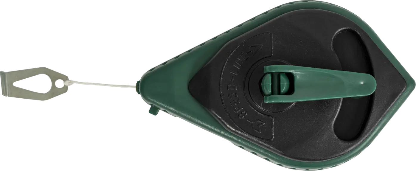 One accessory that facilitates precise straight-line markings is a chalk line. It can be used to create straight lines when painting parking lot stripes or marking the edges of paneling. A strong metal hook ensures proper tension on the line. A foldable crank makes it easy to roll it up after work is finished. The chalk line is 30 meters long and stores inside a handy box, preventing it from tangling and/or getting damaged. To ensure the line leaves marks on the surface, you need to cover its weave with chalk.