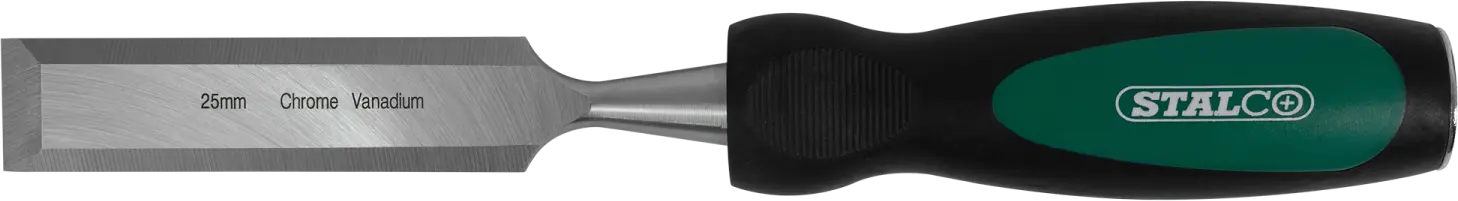 A chisel is a simple hand tool designed for woodworking. It proves indispensable for processing and shaping elements from various species of wood. The tool is essential for hand-crafted carpentry, furniture-making, and construction. It can also be used for many amateur tasks, such as modeling or carving. The STALCO chisel is a very durable tool. The cutting part is made of a high-quality chrome-vanadium steel alloy. It has been shaped to facilitate wood cutting and ensure precision. The handle is shock- and impact-resistant and features a metal tip designed for hammering. This facilitates working with hard types of wood. Furthermore, the handle is ergonomic and made of a two-component material, improving comfort and a secure grip during work. STALCO offers chisels in over a dozen different variants. Individual products vary in cutting width and are available in versions ranging from 6 to 38 millimeters.