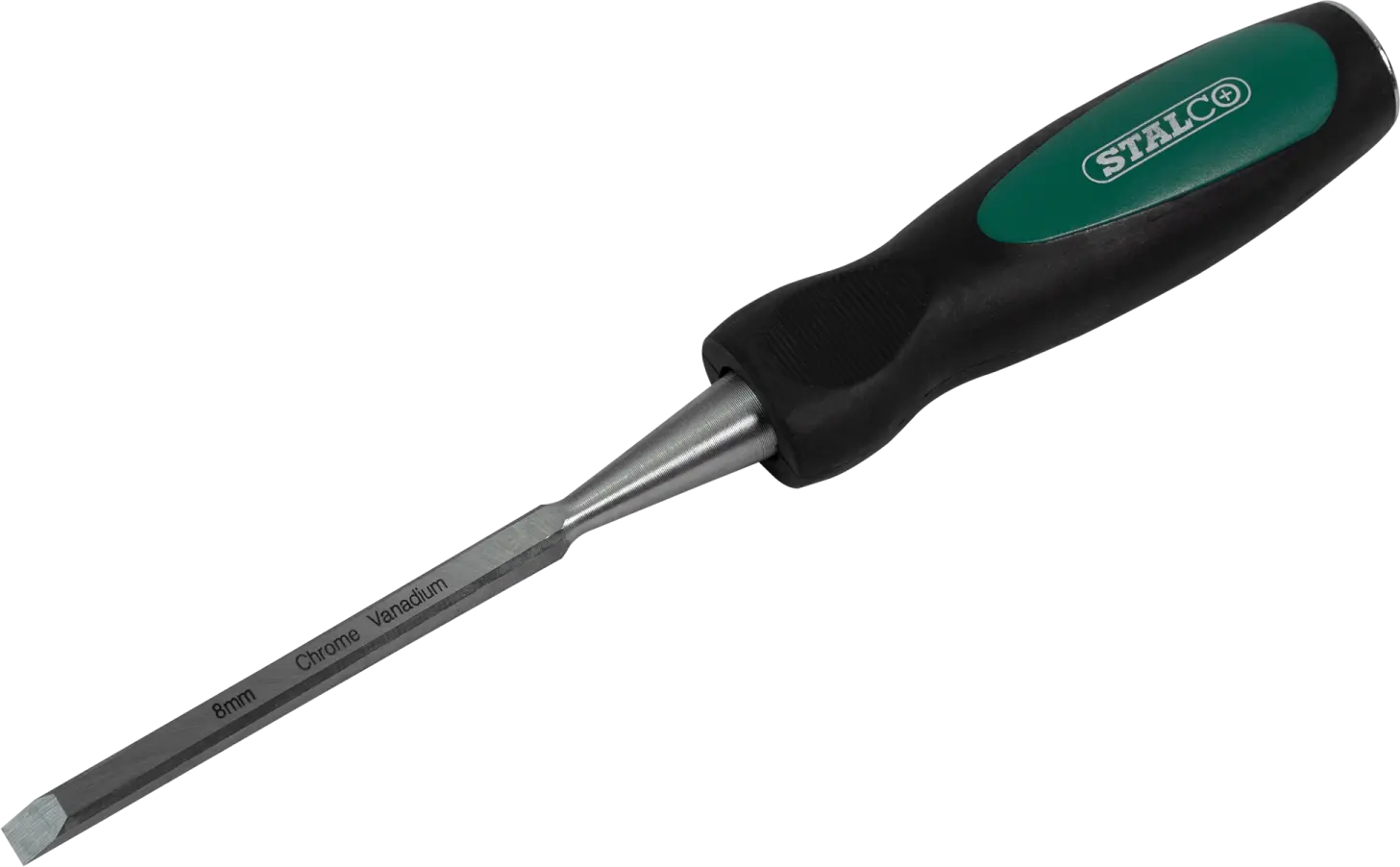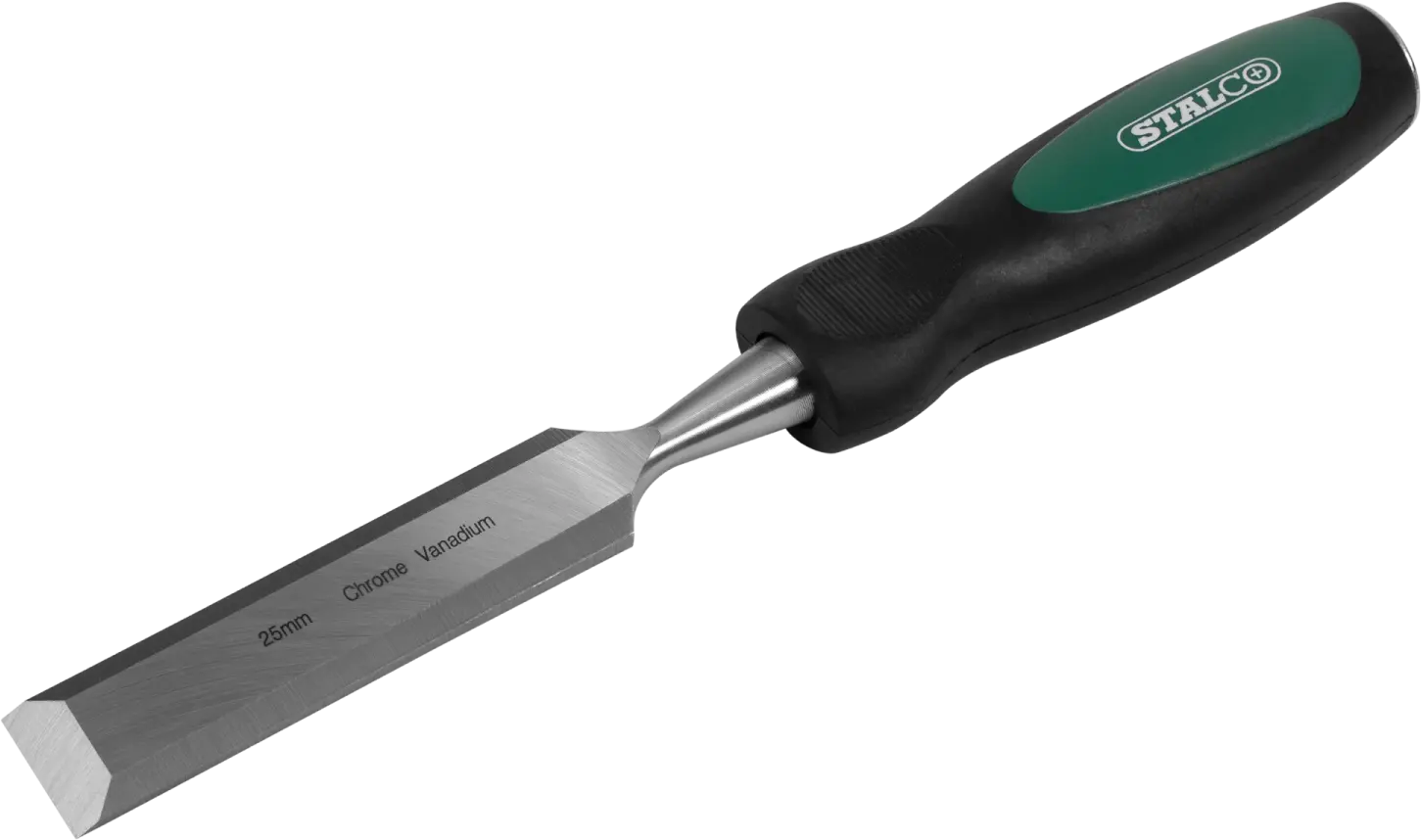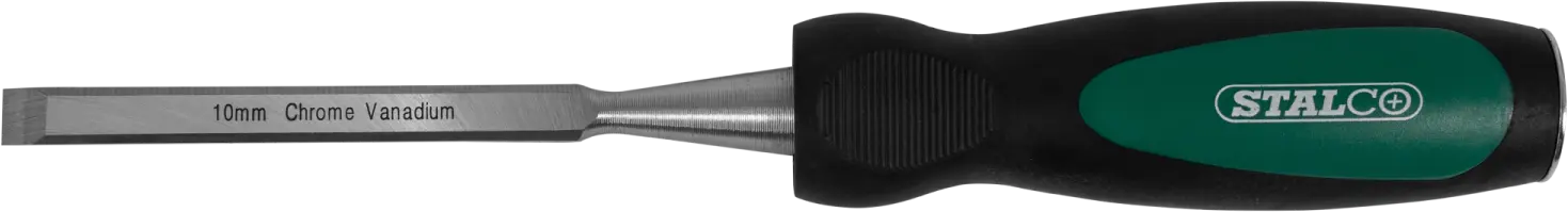 A chisel is a simple hand tool designed for woodworking. It proves indispensable for processing and shaping elements from various species of wood. The tool is essential for hand-crafted carpentry, furniture-making, and construction. It can also be used for many amateur tasks, such as modeling or carving. The STALCO chisel is a very durable tool. The cutting part is made of a high-quality chrome-vanadium steel alloy. It has been shaped to facilitate wood cutting and ensure precision. The handle is shock- and impact-resistant and features a metal tip designed for hammering. This facilitates working with hard types of wood. Furthermore, the handle is ergonomic and made of a two-component material, improving comfort and a secure grip during work. STALCO offers chisels in over a dozen different variants. Individual products vary in cutting width and are available in versions ranging from 6 to 38 millimeters.