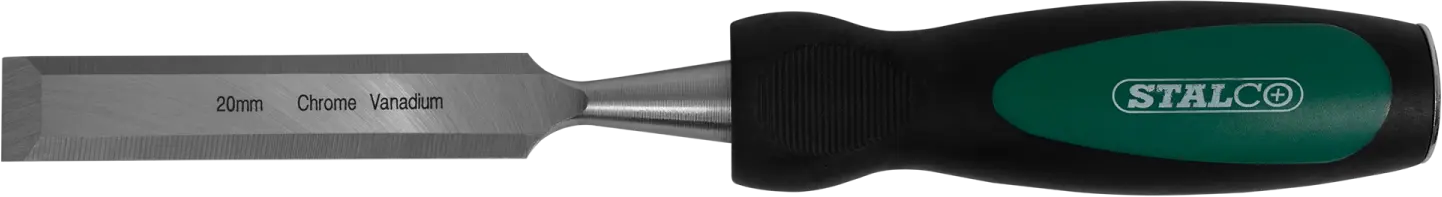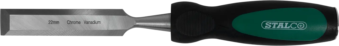 A chisel is a simple hand tool designed for woodworking. It proves indispensable for processing and shaping elements from various species of wood. The tool is essential for hand-crafted carpentry, furniture-making, and construction. It can also be used for many amateur tasks, such as modeling or carving. The STALCO chisel is a very durable tool. The cutting part is made of a high-quality chrome-vanadium steel alloy. It has been shaped to facilitate wood cutting and ensure precision. The handle is shock- and impact-resistant and features a metal tip designed for hammering. This facilitates working with hard types of wood. Furthermore, the handle is ergonomic and made of a two-component material, improving comfort and a secure grip during work. STALCO offers chisels in over a dozen different variants. Individual products vary in cutting width and are available in versions ranging from 6 to 38 millimeters.
