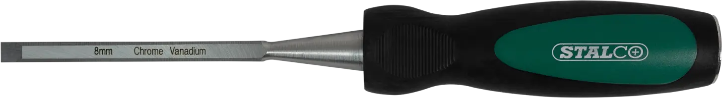 A chisel is a simple hand tool designed for woodworking. It proves indispensable for processing and shaping elements from various species of wood. The tool is essential for hand-crafted carpentry, furniture-making, and construction. It can also be used for many amateur tasks, such as modeling or carving. The STALCO chisel is a very durable tool. The cutting part is made of a high-quality chrome-vanadium steel alloy. It has been shaped to facilitate wood cutting and ensure precision. The handle is shock- and impact-resistant and features a metal tip designed for hammering. This facilitates working with hard types of wood. Furthermore, the handle is ergonomic and made of a two-component material, improving comfort and a secure grip during work. STALCO offers chisels in over a dozen different variants. Individual products vary in cutting width and are available in versions ranging from 6 to 38 millimeters.