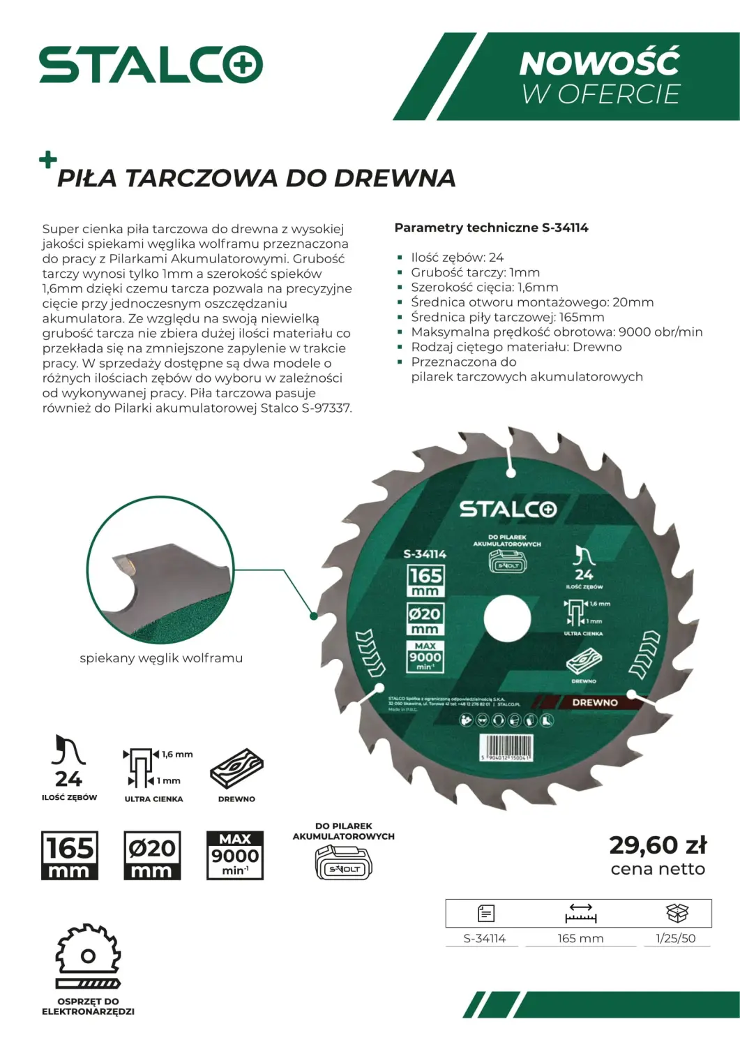 Circular saw for wood ø160x20x2.4mm, 36z, ø16 mm, max 9500rpm (5907527911985)