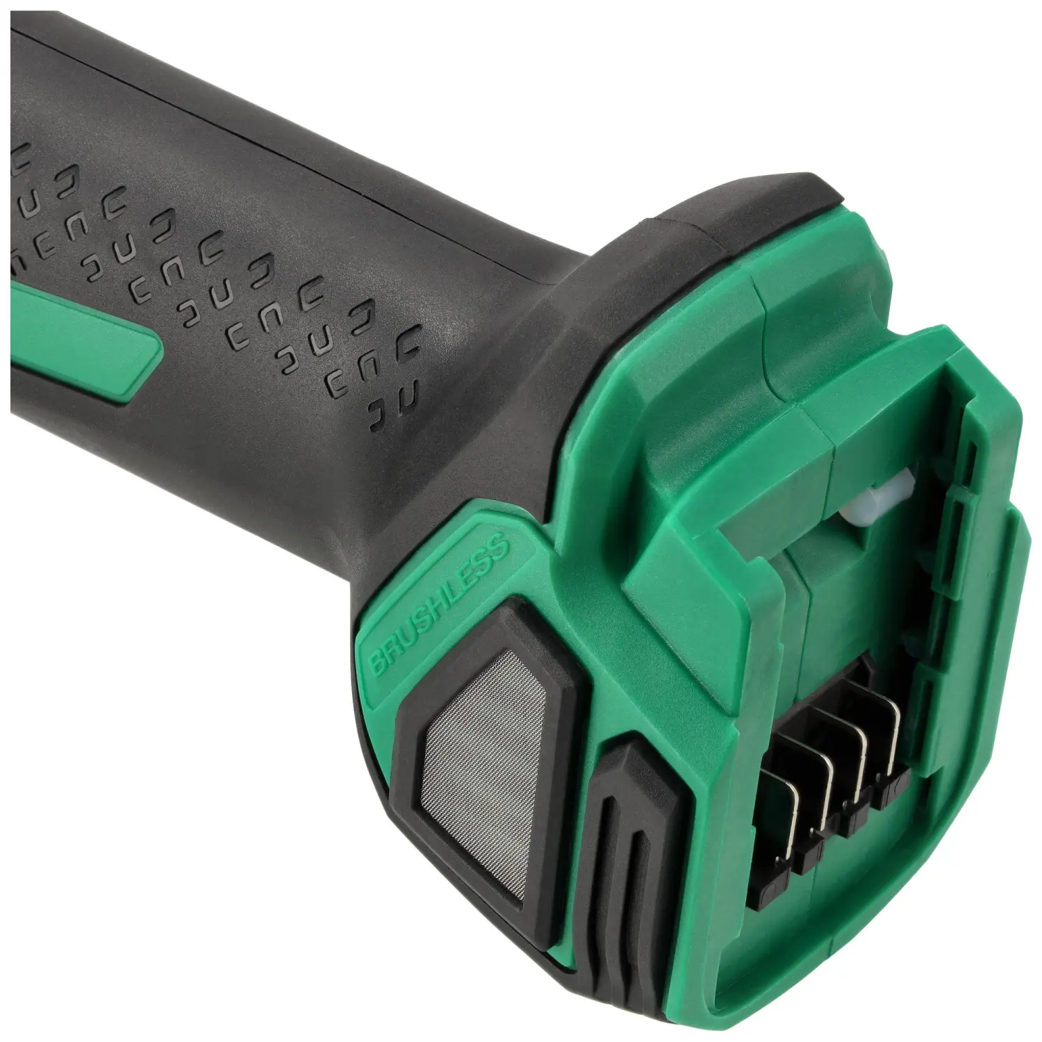 The ventilation design ensures efficient heat dissipation while preventing dust and debris from entering the device. Safety and comfort are enhanced by the soft start system, electric brake, and disc anti-kickback protection.