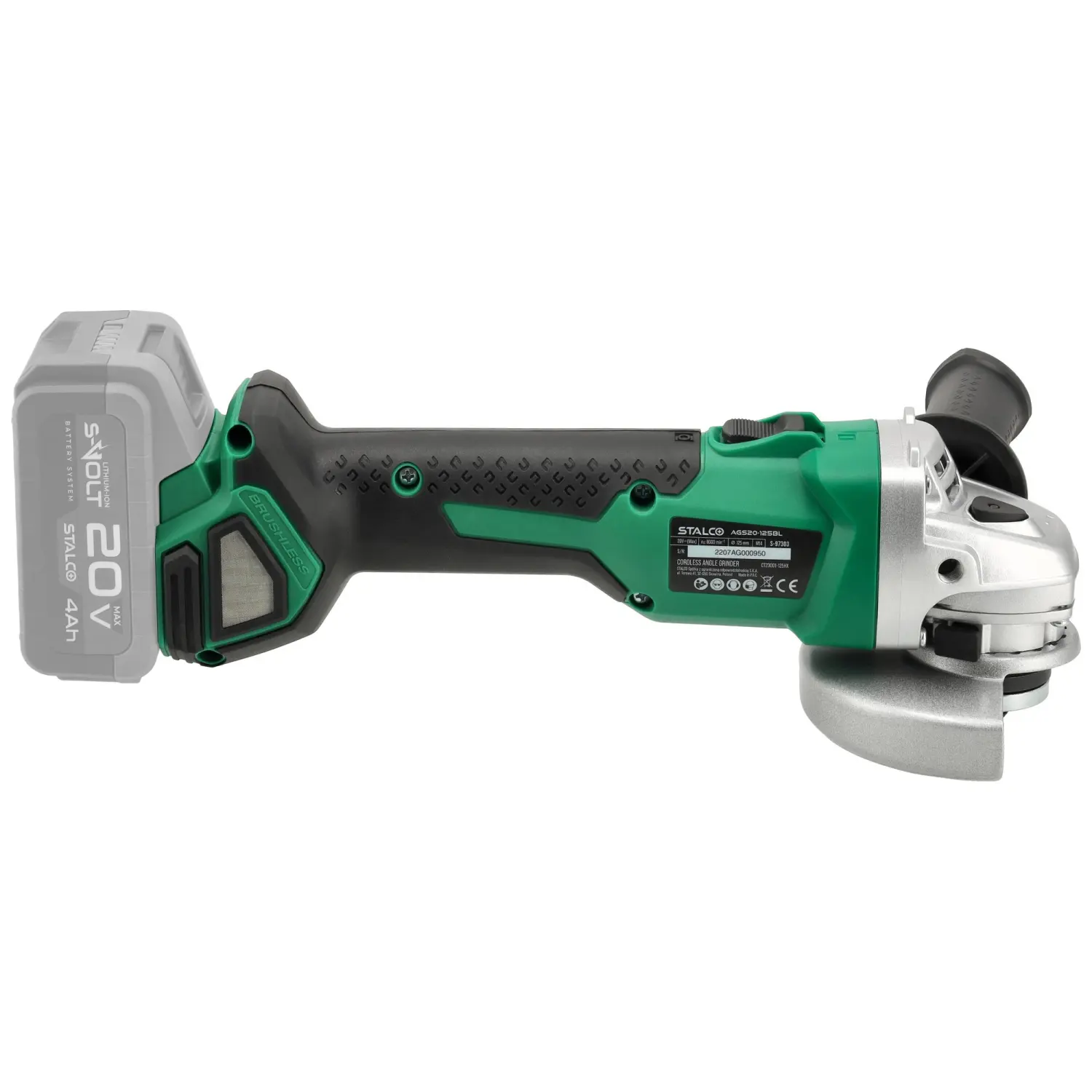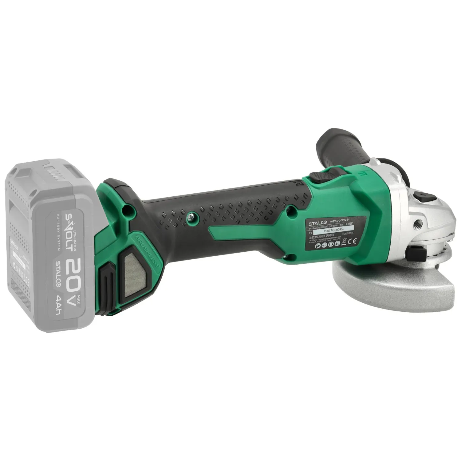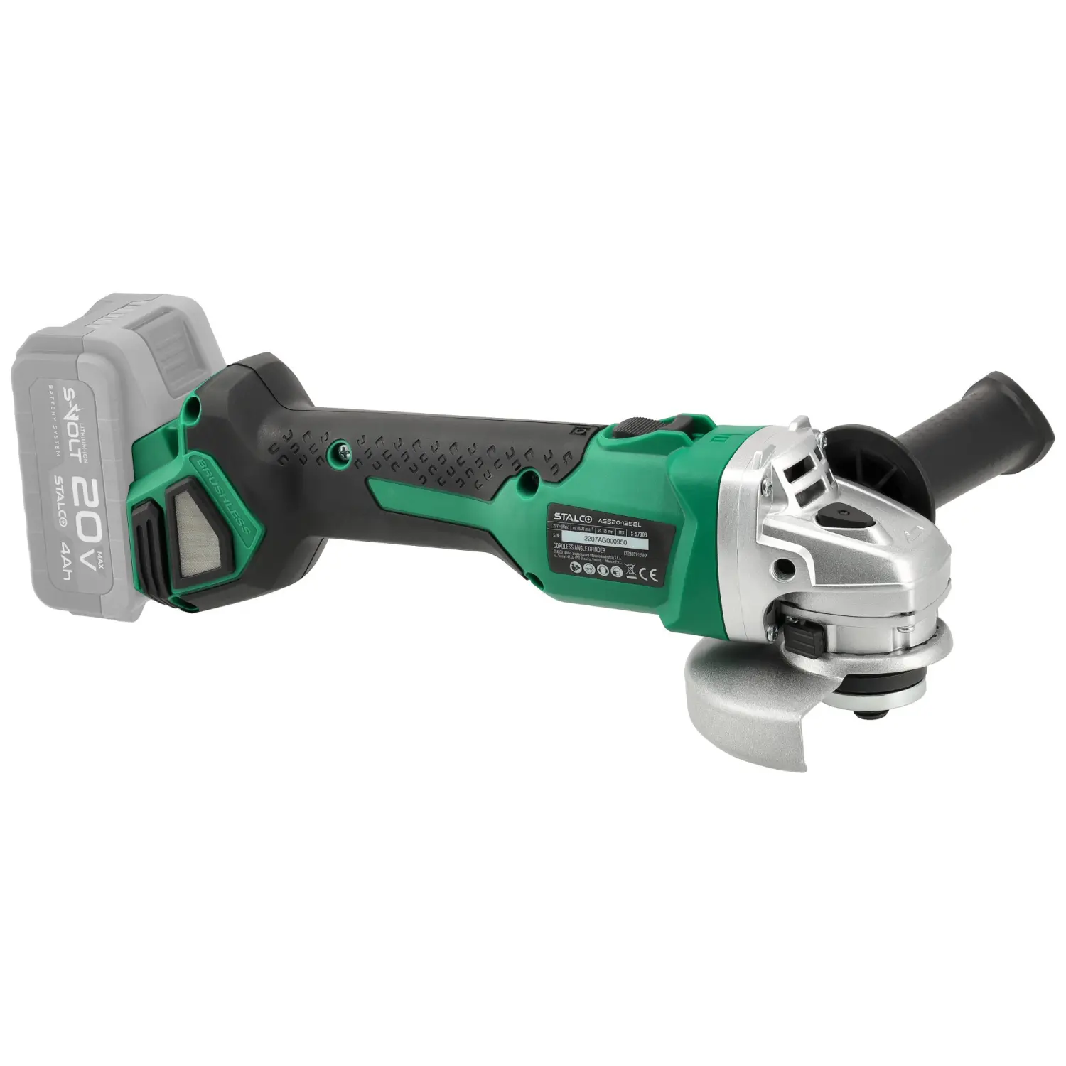 The AGS20-125BL Cordless Angle Grinder is a highly versatile workshop and construction tool. Equipped with an M14 spindle, it allows the mounting of various discs for grinding and cutting hard construction materials. All 125 mm discs are compatible.