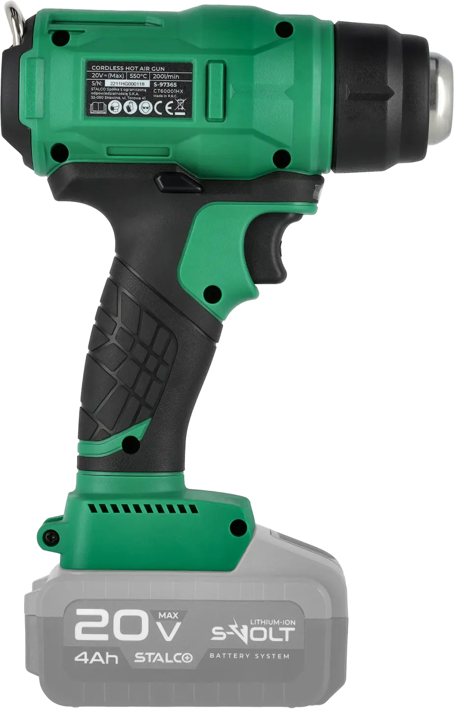 The HGS20-550 Cordless Heat Gun is a convenient tool for construction and workshop tasks. Powered by a high-performance Li-Ion battery, it allows work in areas where pulling power cords is inconvenient.