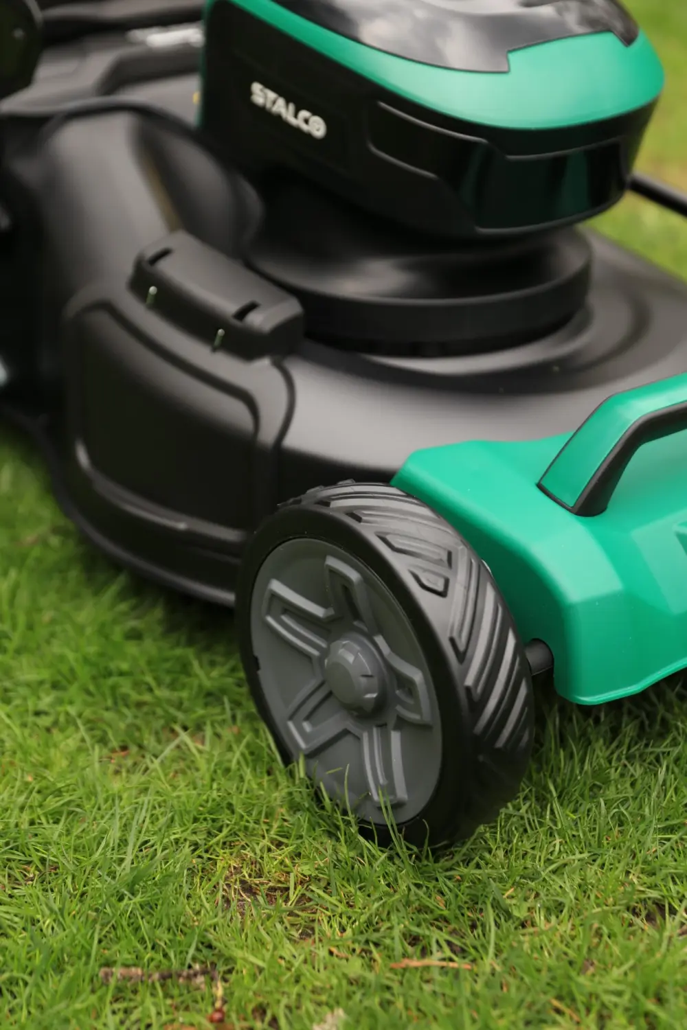 The LMS40-46BL cordless lawn mower is ideal for maintaining large lawns. Powered by a high-capacity lithium-ion battery, its brushless motor ensures efficient energy use and long lifespan. The mower operates quietly and emits no harmful fumes, and it can work far from buildings without the need for power cables.