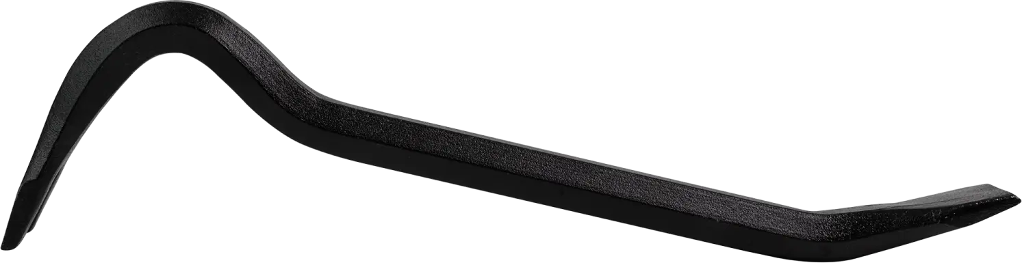 The popular crowbar is a simple hand tool that operates on the lever principle. Its shape allows for pulling nails, prying apart boards, and separating connected elements. It is primarily used in demolition work.
