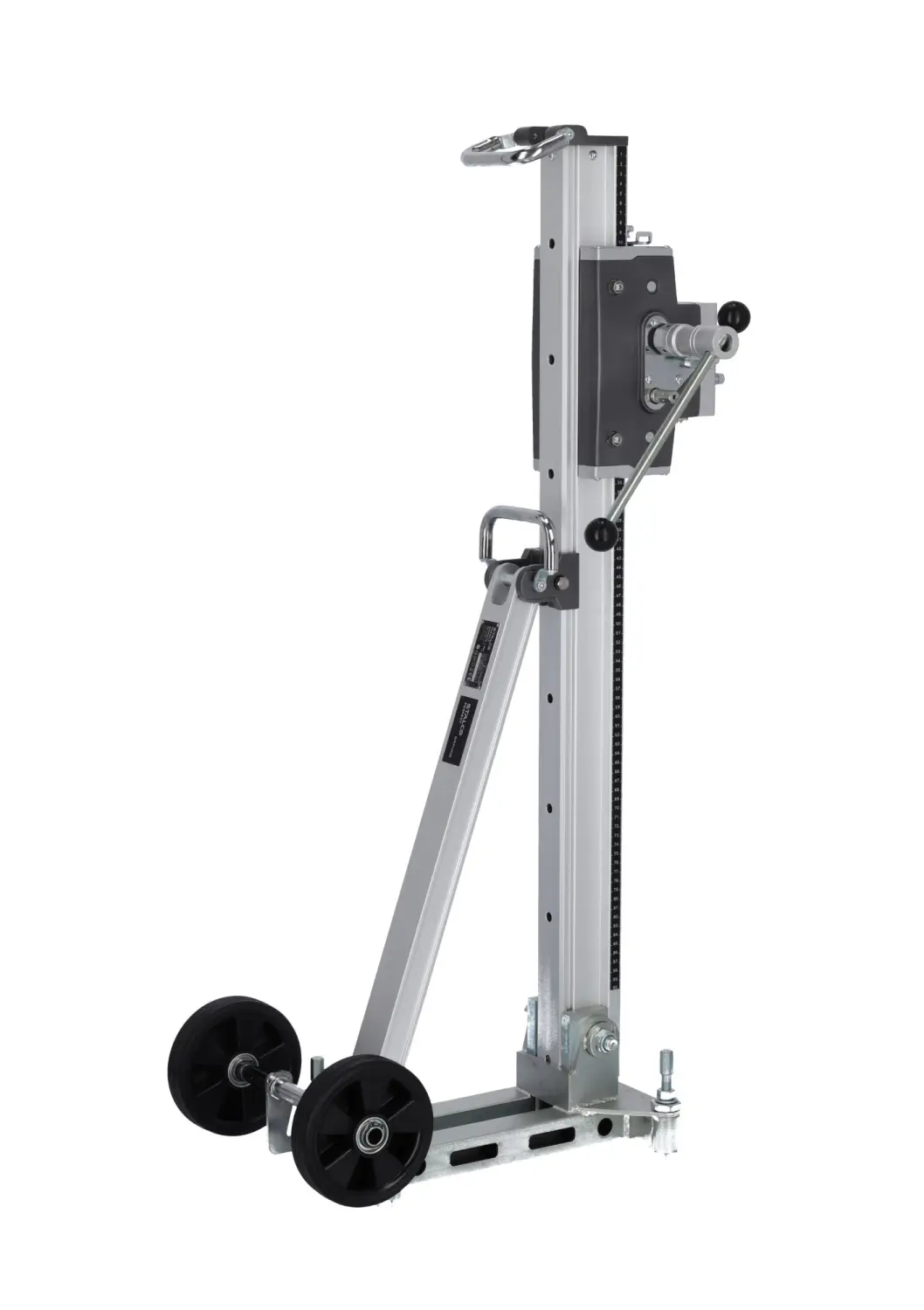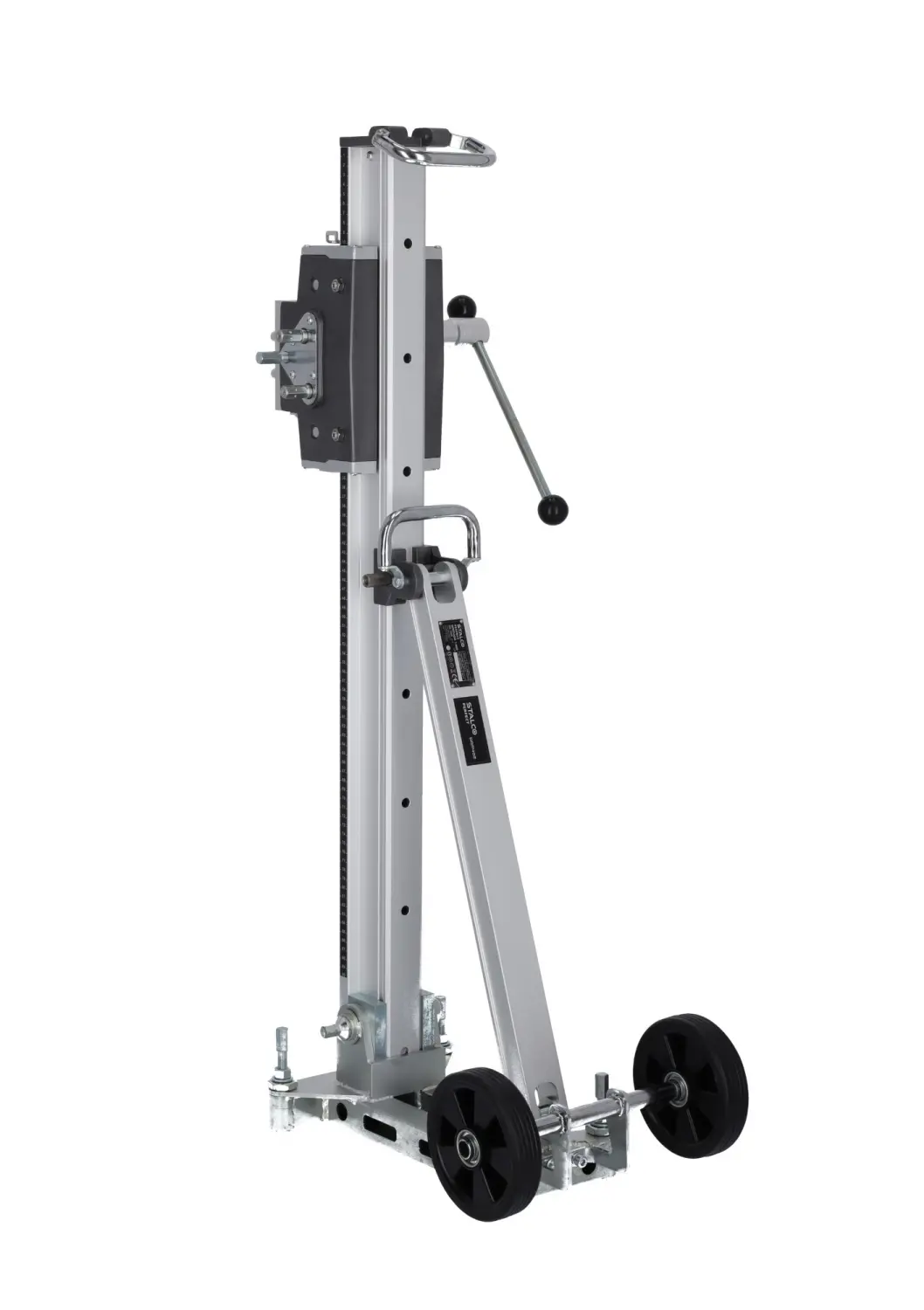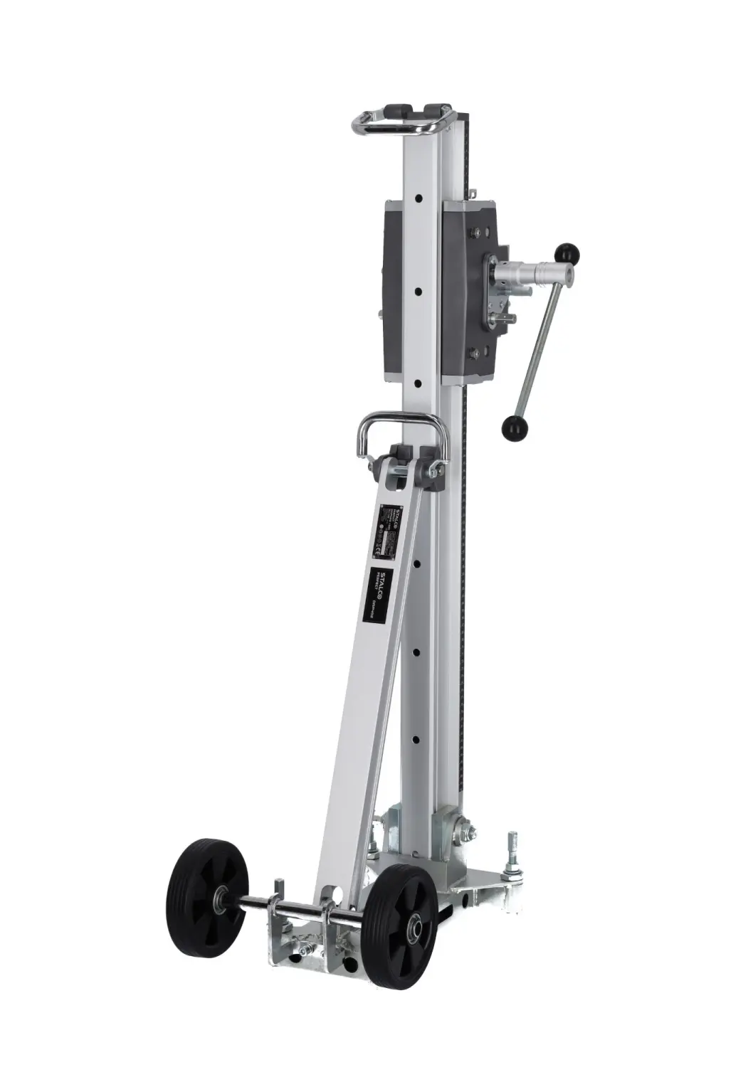 The professional DRP402 Diamond Drill Stand by STALCO enables drilling with accessories up to 402 mm in diameter. It is essential for making precise openings through ceilings and walls. The stand allows angled drilling, with tilt adjustment up to 45°, enabling exact positioning of the drill. Made from modern magnesium alloy, it is lightweight, durable, and extremely strong, making it ideal for tough construction conditions. The stand has a 610 mm travel length, allowing deep drilling. The reduction gearbox facilitates handling even the largest drills, easing the operator’s work.