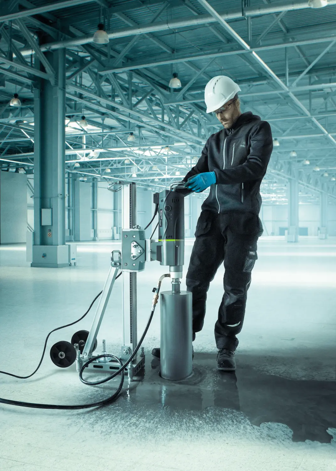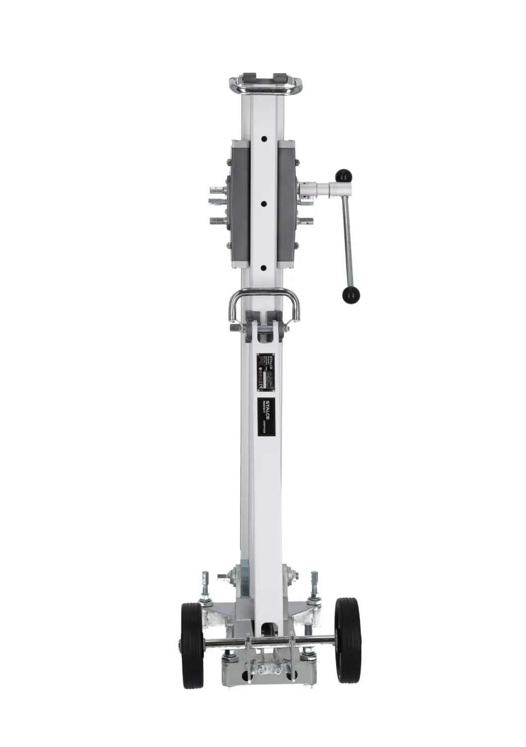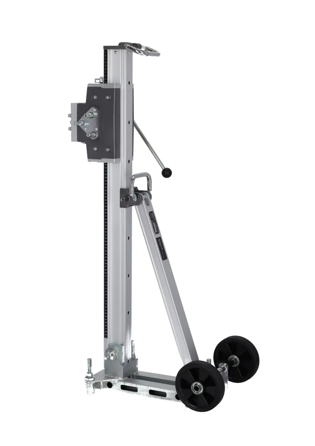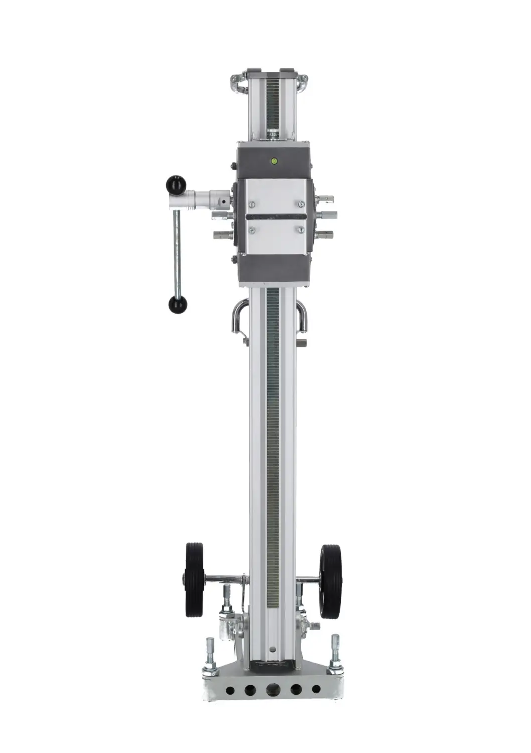 The professional DRP402 Diamond Drill Stand by STALCO enables drilling with accessories up to 402 mm in diameter. It is essential for making precise openings through ceilings and walls. The stand allows angled drilling, with tilt adjustment up to 45°, enabling exact positioning of the drill. Made from modern magnesium alloy, it is lightweight, durable, and extremely strong, making it ideal for tough construction conditions. The stand has a 610 mm travel length, allowing deep drilling. The reduction gearbox facilitates handling even the largest drills, easing the operator’s work.