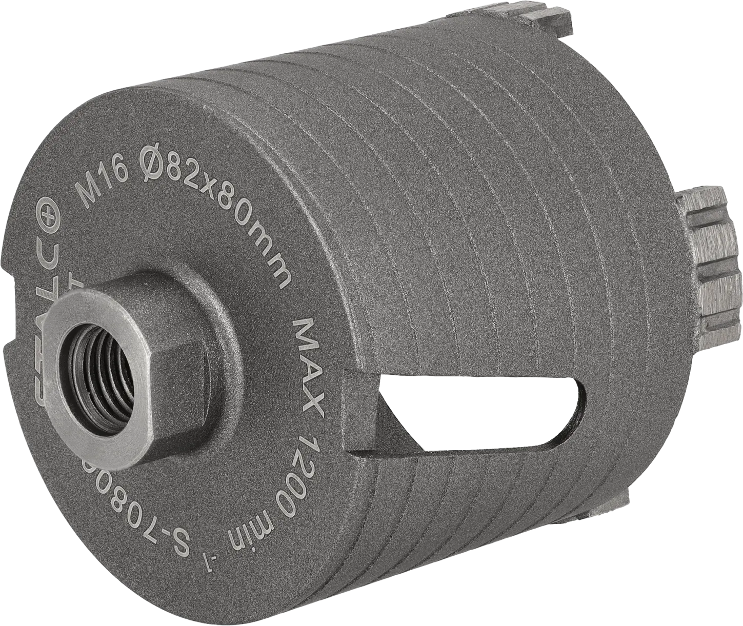 A professional diamond hole saw for concrete should be a must-have for every construction crew. It is used for drilling holes in concrete surfaces during finishing and renovation work. The product's dimensions are adapted to create holes for electrical, distribution, and vacuum installations. The STALCO PERFECT diamond hole saw for concrete can be mounted to power tools using adapters. It is designed for impact-free, dry operation. A turbo diamond segment is responsible for cutting the material, enabling fast and precise concrete cutting. The outer surface is spirally shaped, making it easier to transport the material. The STALCO PERFECT range includes two hole saw variants with diameters of 68 and 82 millimeters.