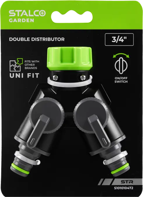 Garden fittings element designed for branching and connecting hoses to a tap or other water source using quick connectors