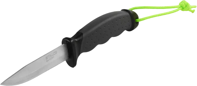 Features: Knife with a stainless steel blade that ensures sharpness and durability Handle made of PP and TPE materials, resistant to damage, providing a good and comfortable grip Equipped with a holster with a belt clip for convenient and safe carrying The included string allows for hanging in a storage place