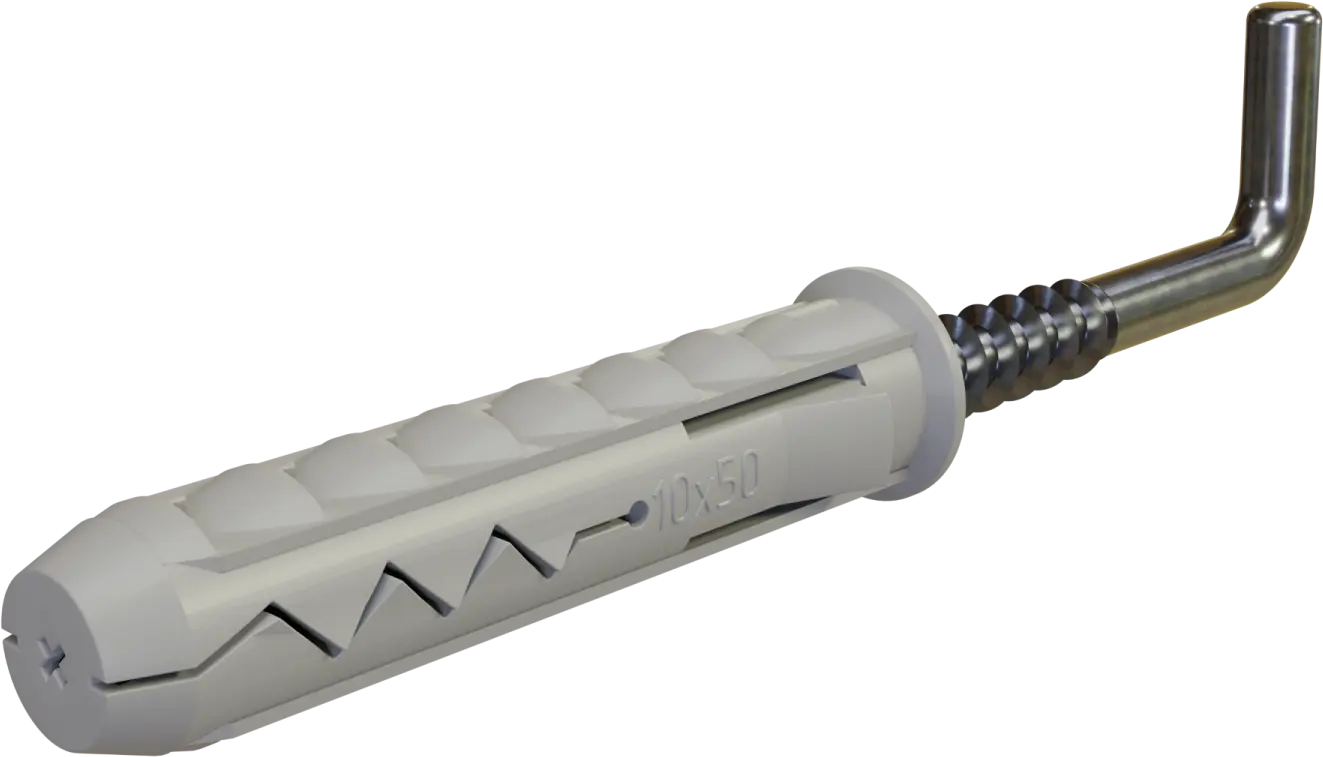 The expansion bolt with a straight hook is used in construction and installation works. It consists of a polypropylene sleeve that expands inside the hole and a galvanized steel screw ending with a straight hook.