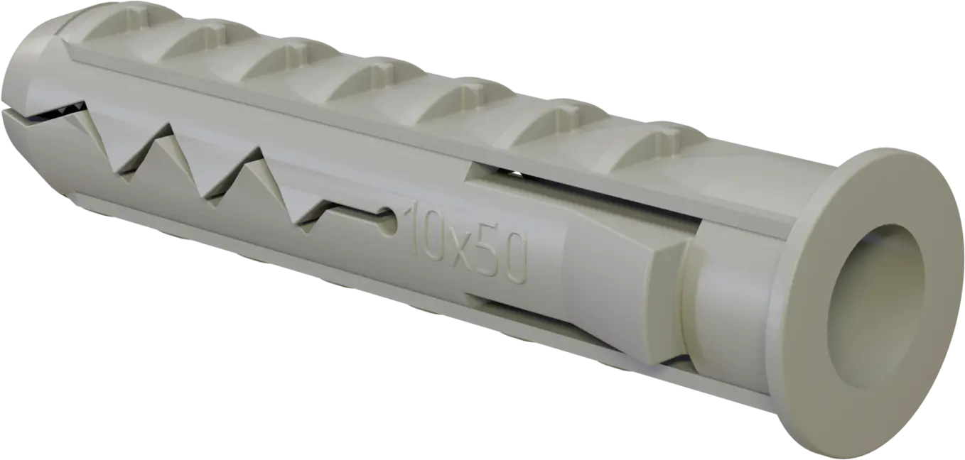 The expansion plug sleeve is used for attaching various elements such as cabinets, handles, and brackets to solid substrates. It is made of high-impact polypropylene. Sleeves are available in several variants, differing in length and outer diameter. A screw of the appropriate diameter should be screwed into the plug sleeve.