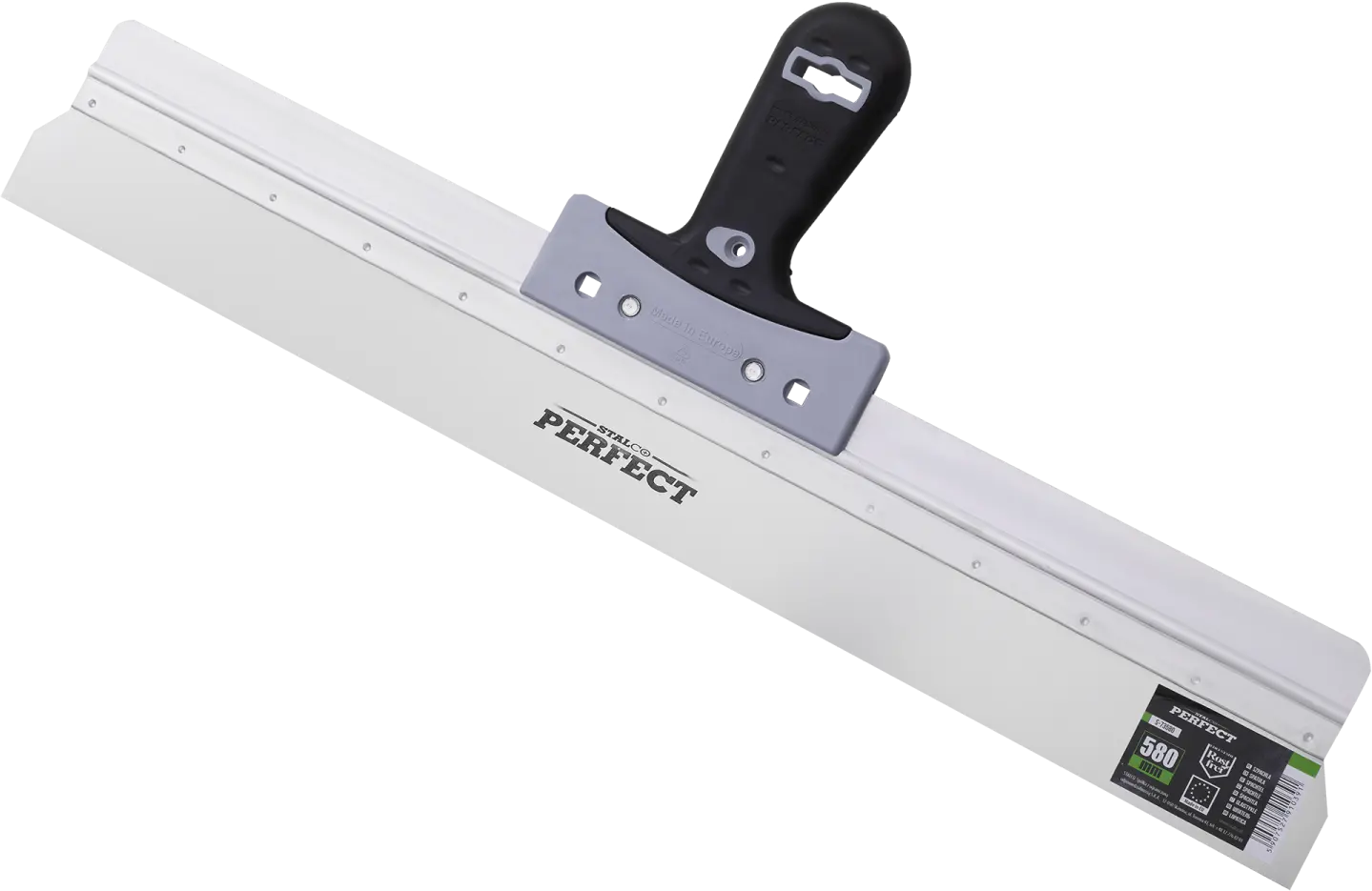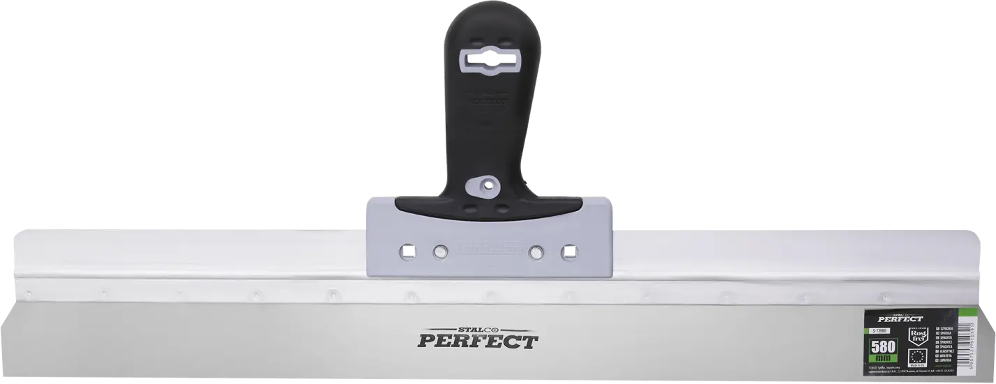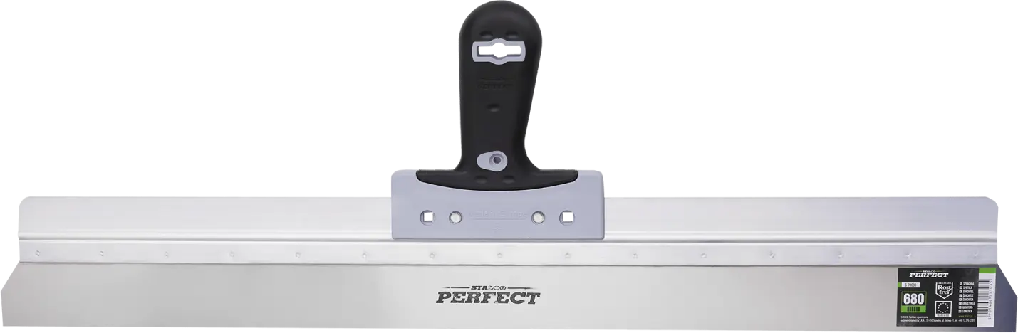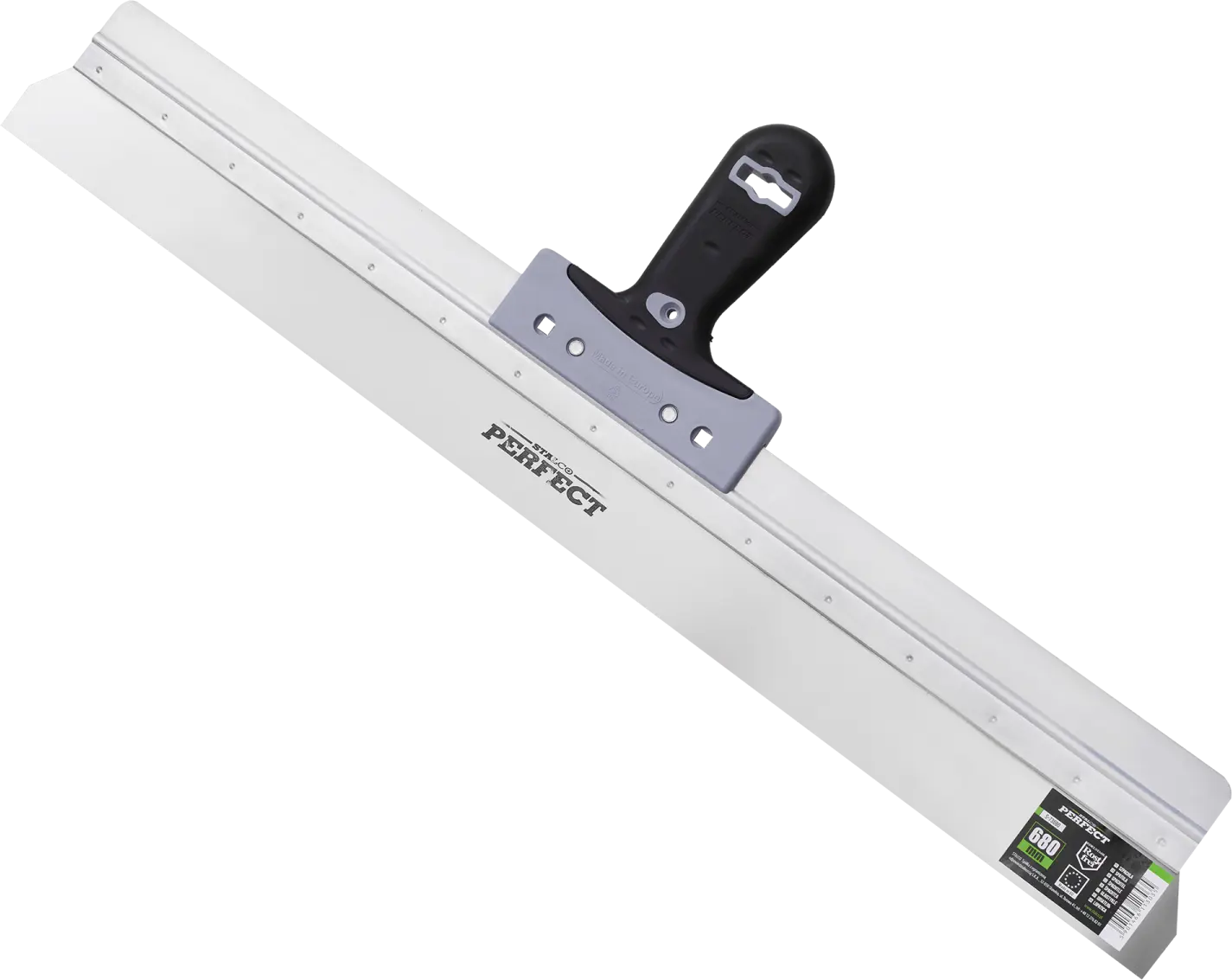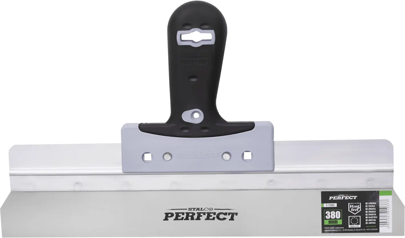 For renovation and finishing work, you'll need a professional facade putty knife. This tool is designed for leveling gypsum and plaster, as well as removing excess material. It can also be useful for spreading resins, adhesives, silicones, and other compounds. The STALCO Perfect facade putty knife is designed for professional use. It features a 0.4 mm thick stainless steel blade. The material is resistant to mechanical damage and flexible. A two-component handle with a comfortable shape ensures precise spreading. A strong aluminum profile ensures the rigidity of the entire structure. The entire tool is very durable and lightweight, which is appreciated when working in awkward positions. STALCO offers putties in four widths, from 380 mm to 680 mm.