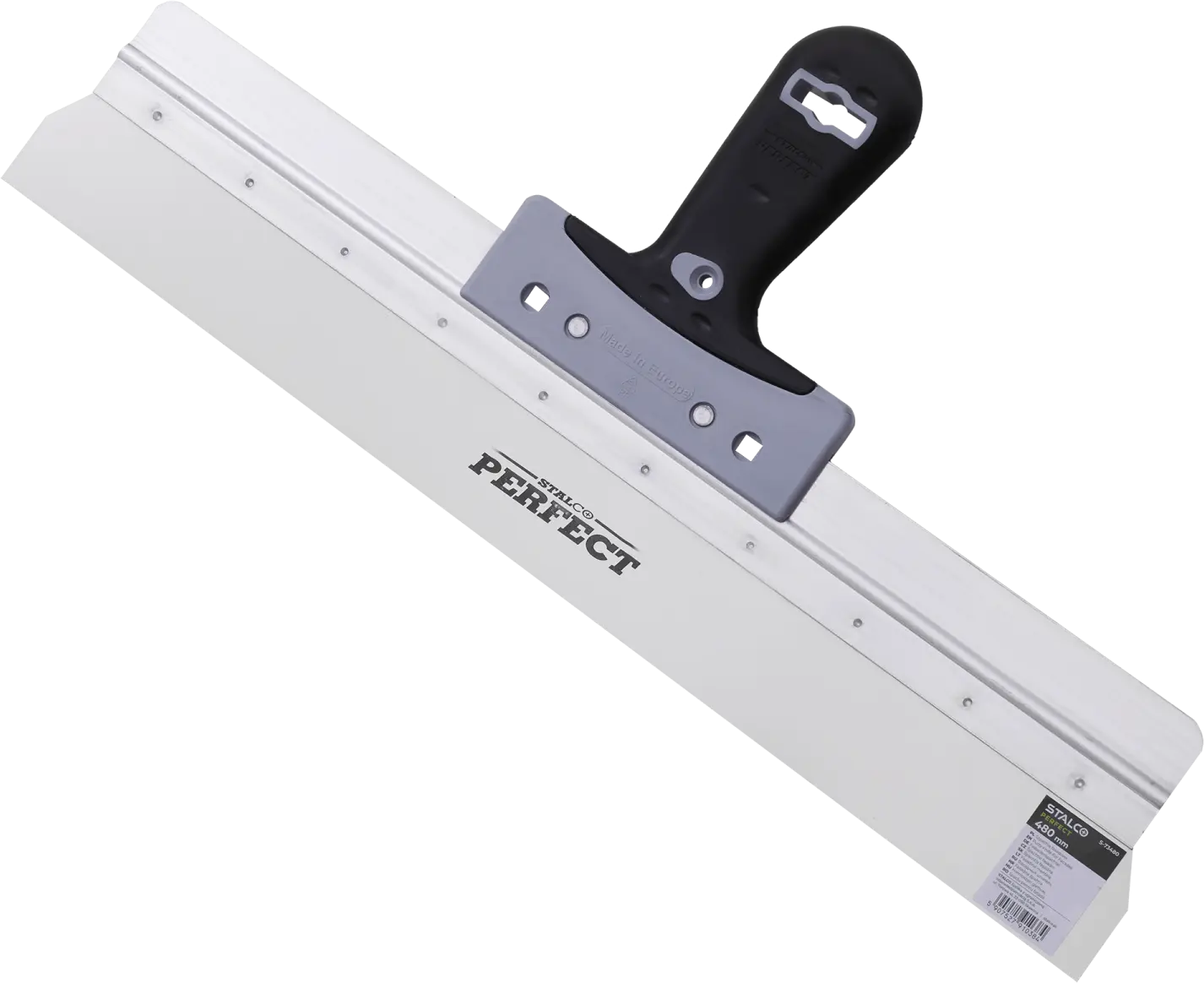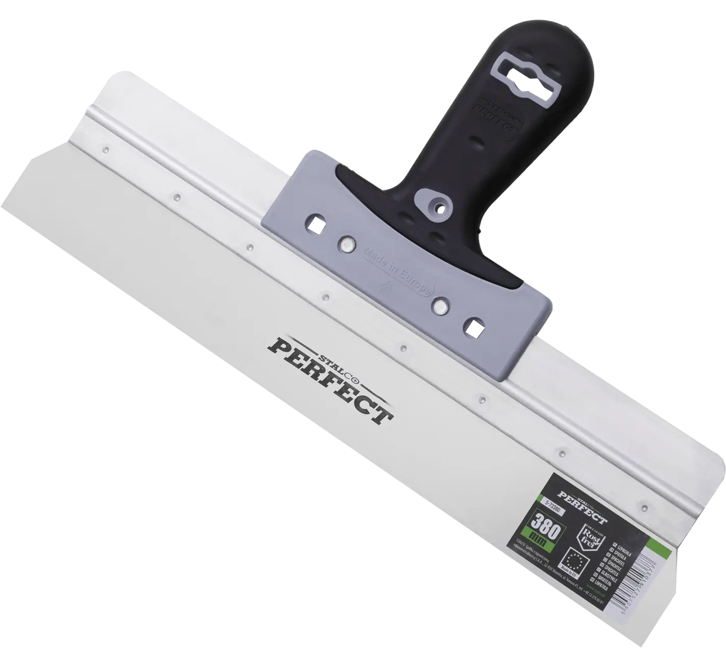 For renovation and finishing work, you'll need a professional facade putty knife. This tool is designed for leveling gypsum and plaster, as well as removing excess material. It can also be useful for spreading resins, adhesives, silicones, and other compounds. The STALCO Perfect facade putty knife is designed for professional use. It features a 0.4 mm thick stainless steel blade. The material is resistant to mechanical damage and flexible. A two-component handle with a comfortable shape ensures precise spreading. A strong aluminum profile ensures the rigidity of the entire structure. The entire tool is very durable and lightweight, which is appreciated when working in awkward positions. STALCO offers putties in four widths, from 380 mm to 680 mm.