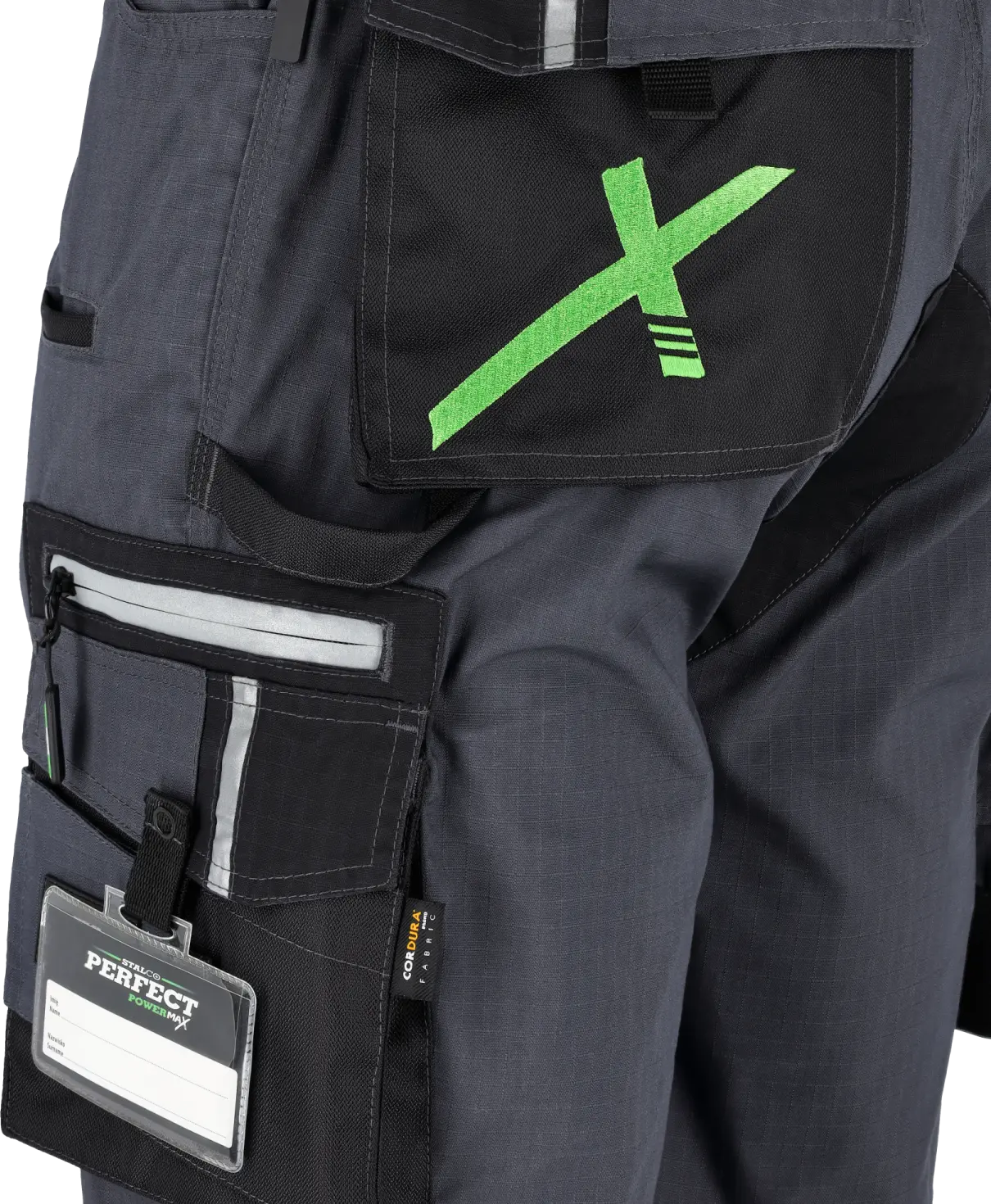 These pants are designed for use in harsh conditions. All seams are triple-stitched, preventing tearing in this area. Reinforcing bartacks are used in specific areas. Belt loops and Velcro are also reinforced. A double layer of fabric, known as a patch, is placed at the back, where the risk of tearing is greatest. The RIP-STOP fabric prevents the material from unraveling even if it is only slightly torn.
