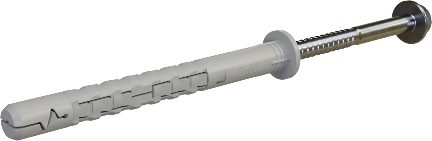 The TXK frame expansion plug is a connector designed for mounting in all types of building substrates – solid and perforated. It consists of a polyamide sleeve and a zinc-plated steel screw. The screw has a hexagonal head with a TORX socket.