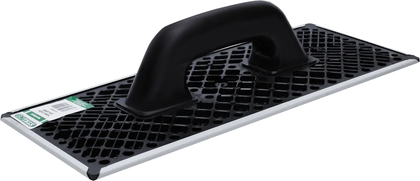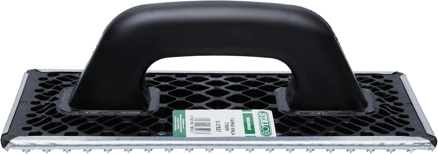When thermally insulating a building, you may need a STALCO grater float. This tool is designed for abrading the surface of polystyrene boards. It removes the yellowish coating that forms under the influence of sunlight, thus reducing the insulation properties. The grater float has a plastic body. The sturdy handle allows you to guide the tool in various planes. The perforated galvanized sheet metal base allows for the removal of board debris and prevents clogging. Depending on your needs, you can choose from 270- and 400-millimeter lengths.
