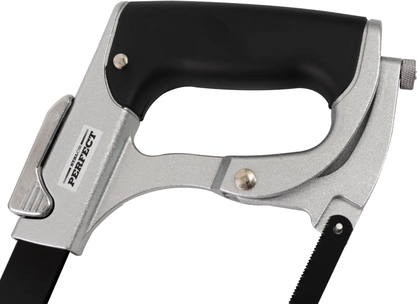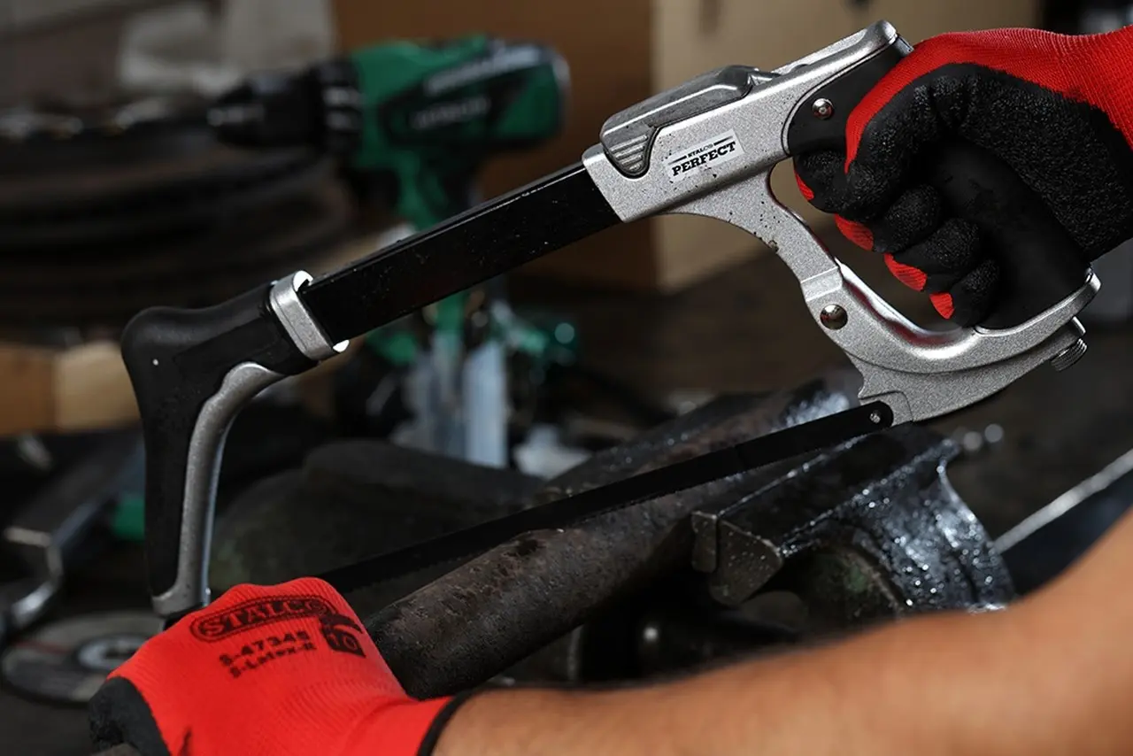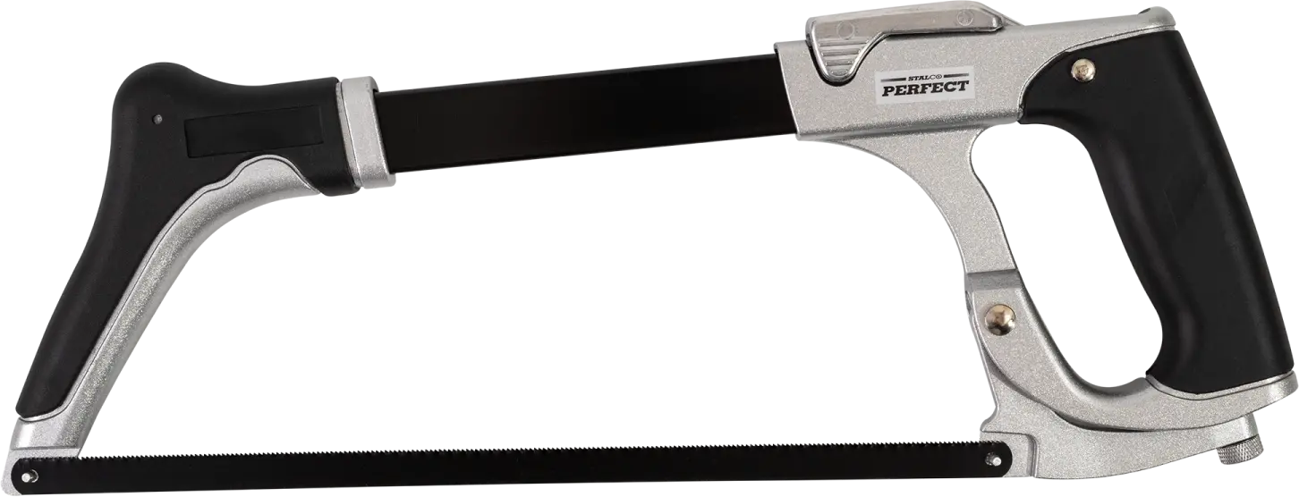When hand-cutting steel elements, a STALCO metal saw is essential. This tool is designed for cutting metal in workshops and construction. The high-carbon steel blade handles even very hard materials. The metal saw features ergonomic handles coated with soft plastic, making it more comfortable to work for hours. A clamping clamp allows for quick blade changes on the metal saw. Blade replacement and tension adjustment are done without any tools, making maintenance faster and easier.