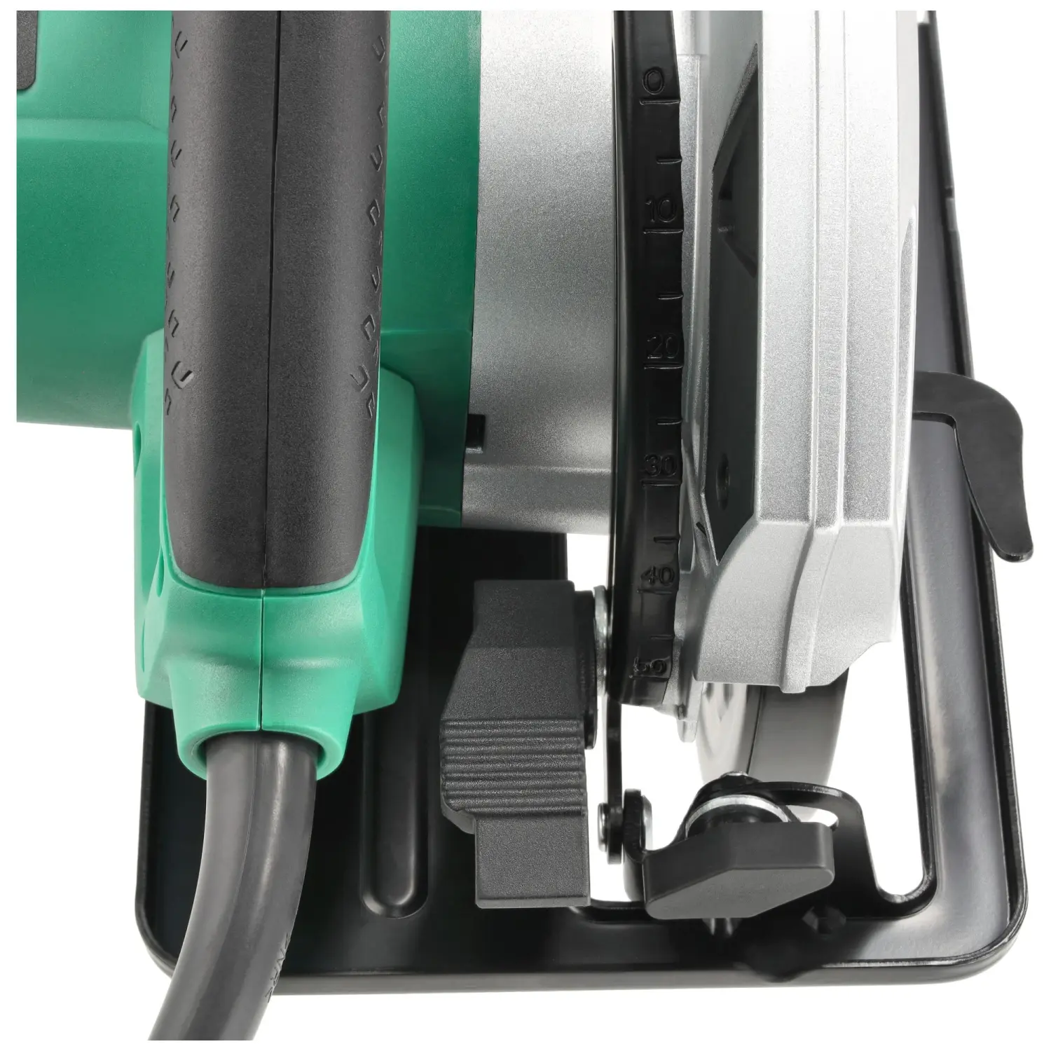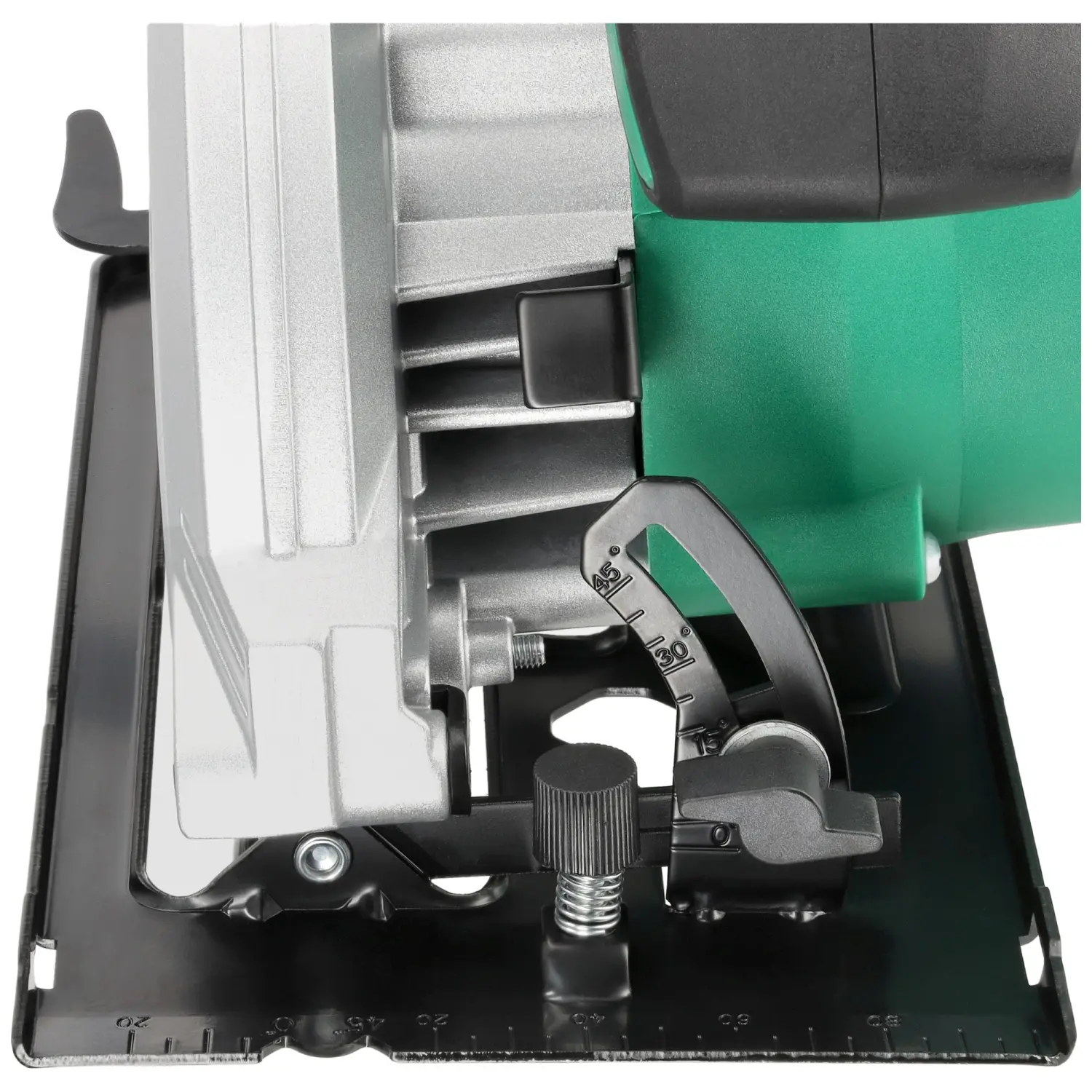 It supports saw blades up to 165 mm in diameter and is powered by a 1200 W motor that can reach up to 5500 RPM. This allows the saw to cut up to 58 mm in depth. The angle of the saw foot can be easily adjusted for bevel cuts from 90° to 45°, and depth adjustment ensures precise cutting on various materials. For a cleaner workspace, the saw can be connected to a vacuum cleaner.