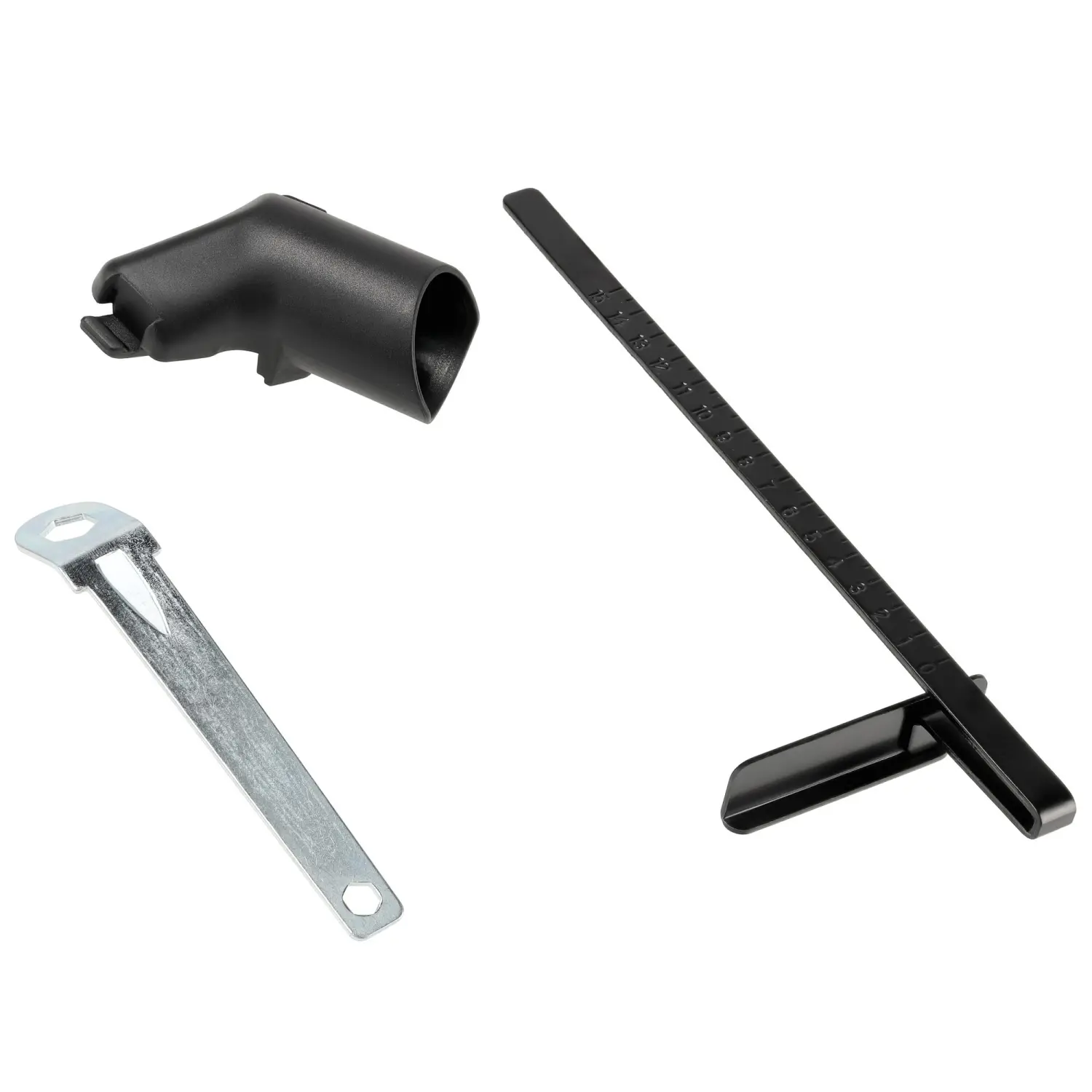 The set includes a parallel guide, vacuum adapter, wrench, and a universal cutting blade.