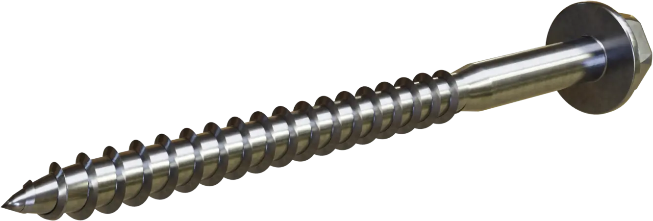 A general-purpose wood screw with a DIN 571 hexagonal head, used in many construction applications.
