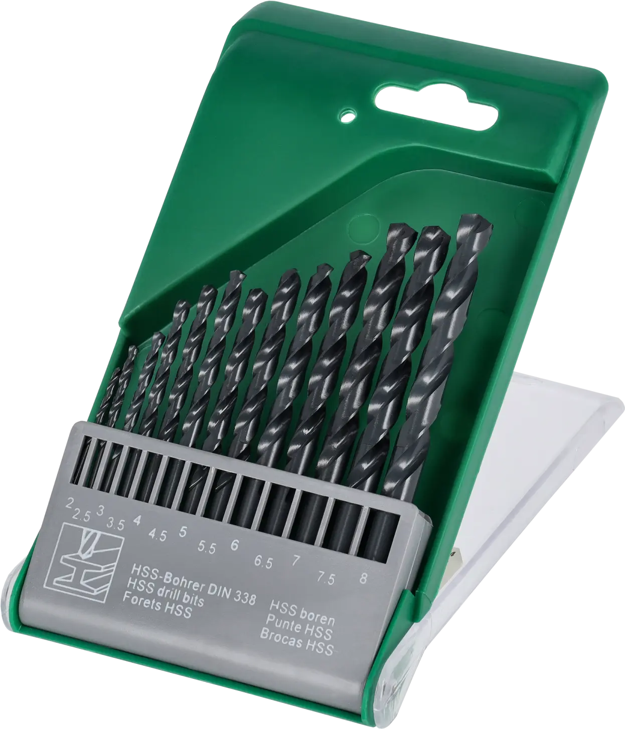 A universal set of metal drill bits suitable for both home use and professional applications. Ideal for workshops, construction work, and household repairs.