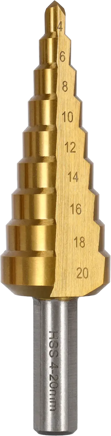 For the most demanding metalworking jobs, an HSS-TiN step drill bit can be indispensable. This power tool accessory is used for enlarging holes, centering drill holes, or milling internal edges. The product can be operated with screwdrivers and drills equipped with cylindrical chuck jaws. The STALCO PERFECT HSS-TiN step drill bit is useful for demanding and professional tasks. It is made of HSS high-speed steel with a titanium nitride coating, providing high abrasion resistance and enabling work with the hardest metals. A spiral flute for chip removal and a cross-cut grind are formed during manufacturing. The drill bit's dimensions are laser-engraved, making it very comfortable to work with. Furthermore, it leaves a smooth edge inside the hole after drilling. STALCO offers three different drill bits, suitable for holes of various diameters and depths.