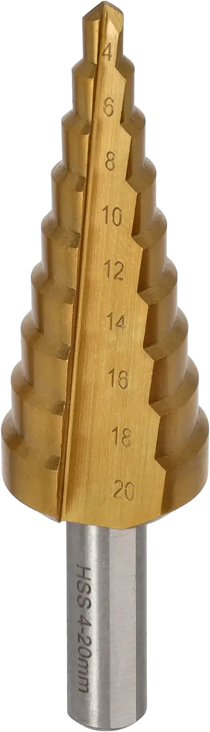 HSS-TiN Step Drill Drill ø 4-20 mm, Pitch 2 mm, Chuck ø 8 mm (5904012136083)