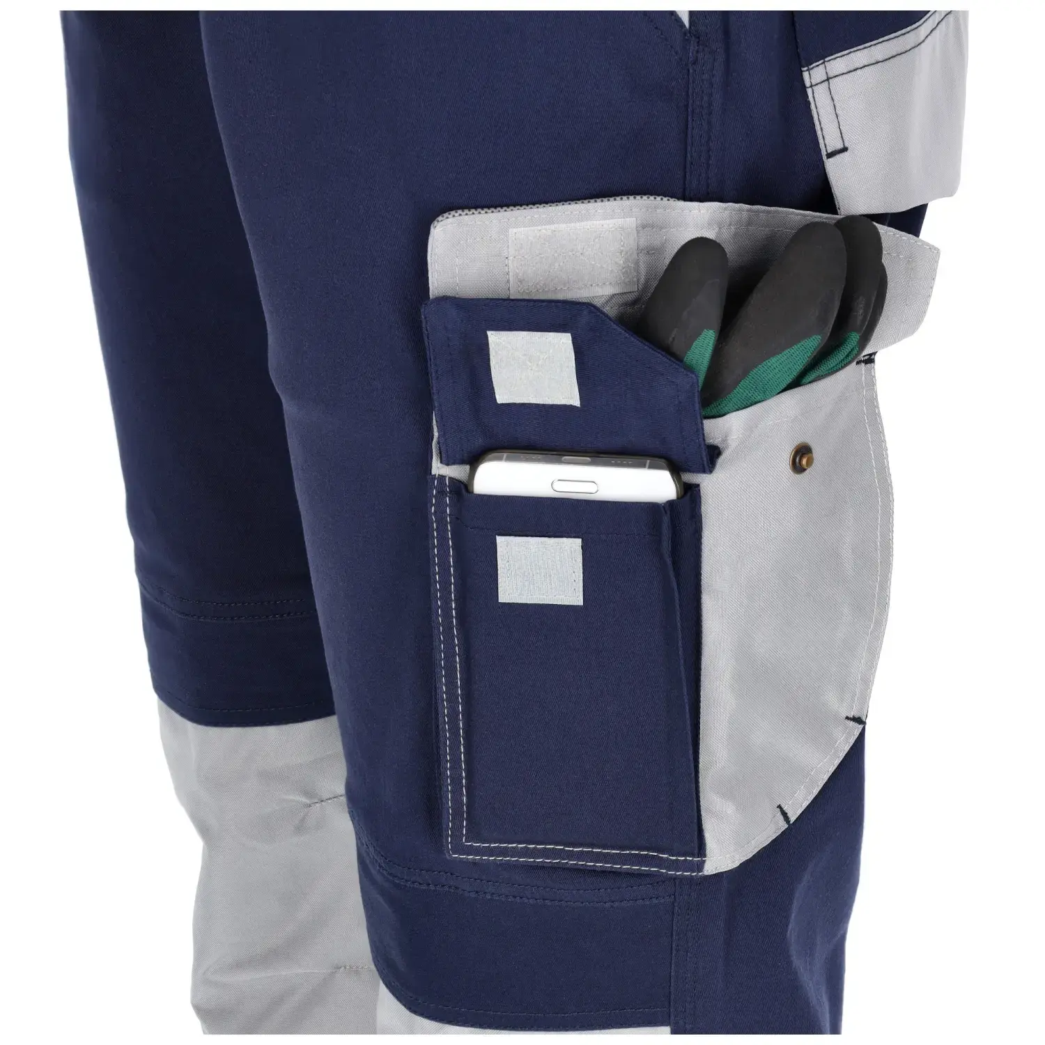 The trousers are made of contrasting color fabric fragments and reflective inserts that improve the employee's visibility.