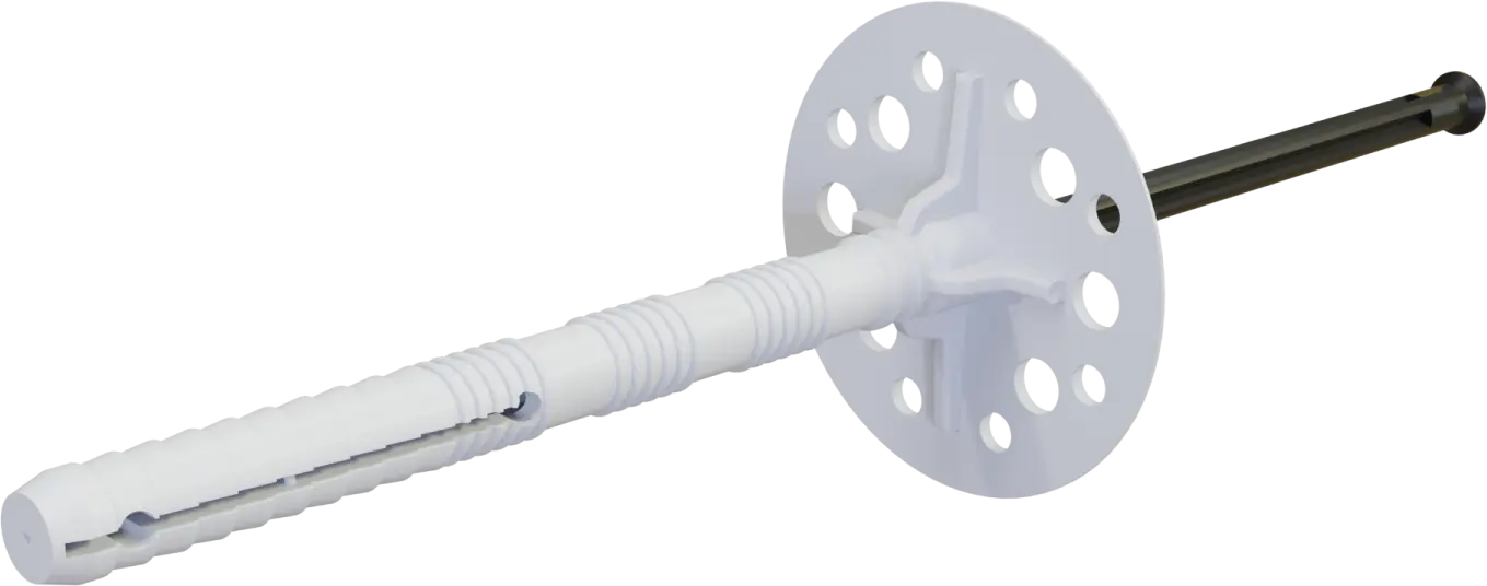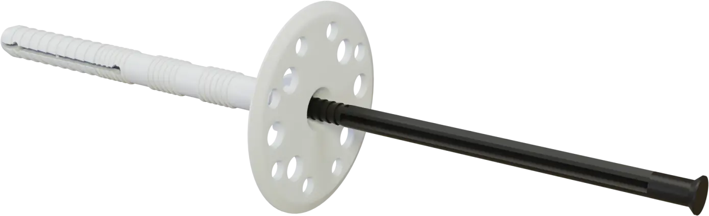 The insulation mounting plug with a hammer-in plastic pin is used in thermal modernization work. The sleeve is made of polyethylene. The pin mounted inside is made of polyamide additionally reinforced with glass fiber.