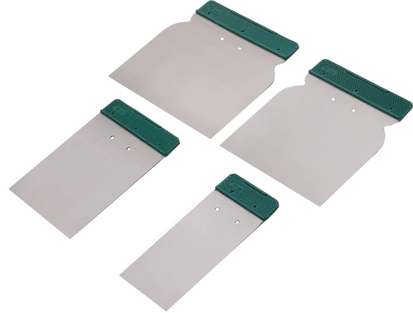 The set of spatulas is ideal for removing paint from glass, for applying material or for smoothing surfaces, and for use in many other areas of application.