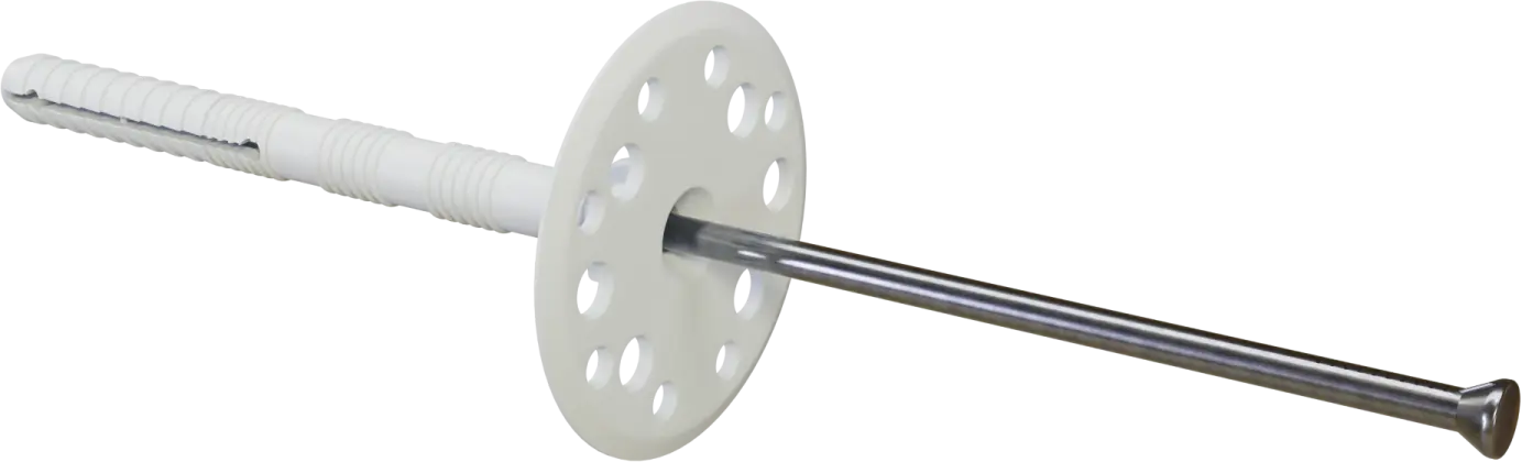 Insulation anchor with a hammer-in metal pin, additionally protected by a zinc coating. The sleeve is made of polyethylene. The KIM anchor is available in several lengths, ranging from 80 to 220 millimeters. It can be used to secure polystyrene boards and mineral wool, as well as boards made of other materials.