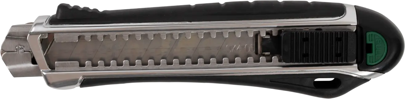 Among your handy tools, don't forget to stock up on a snap-off knife. This tool is designed for cutting or processing materials such as plastic, cardboard, rubber, or even wood. The snap-off knife has an ergonomic body finished with a bi-material handle. Inside, there's a steel guide along which the blade slides. You can store five spare blades in the magazine, and changing them is a snap. The snap-off knife is equipped with an automatic blade lock, making it easier to cut hard materials.